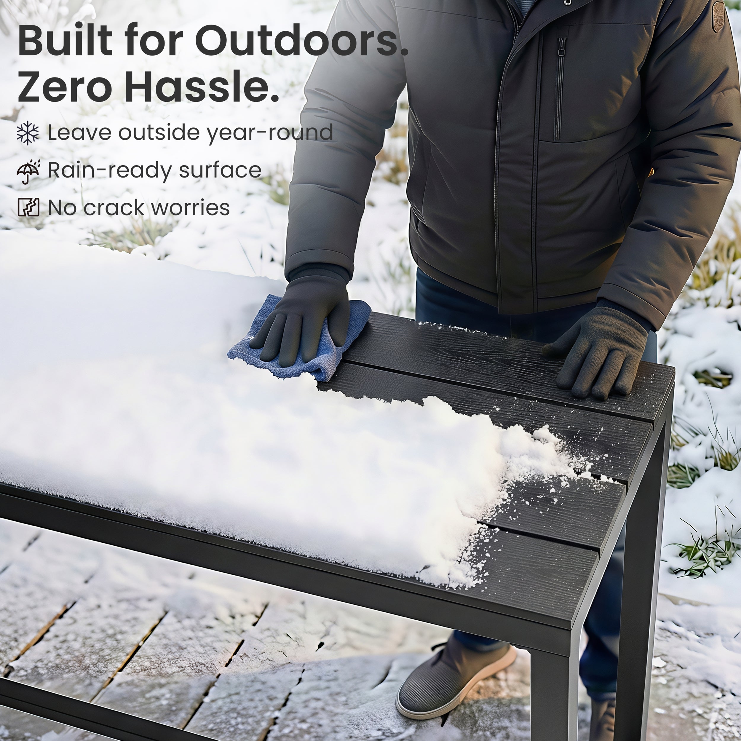 Durable Composite Wood Slats: Crafted from weather-resistant composite wood, this table withstands UV rays, moisture, cracking, and warping—built to last through years of daily use.