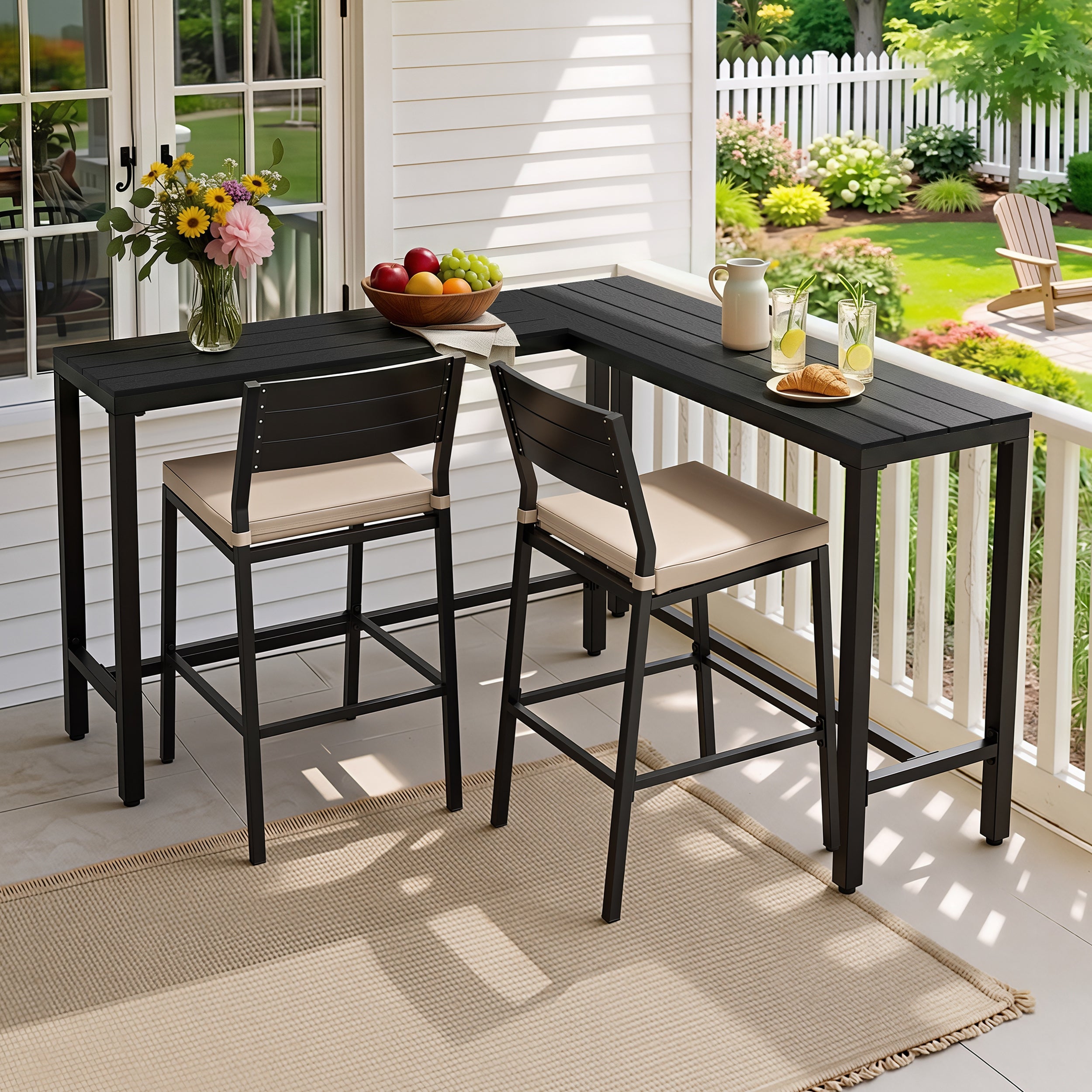 Space-Saving L-Shape Design: Perfect for corners, this L-shaped table helps you make the most of your space while providing extra seating or a convenient workspace for small rooms, apartments, or patios.