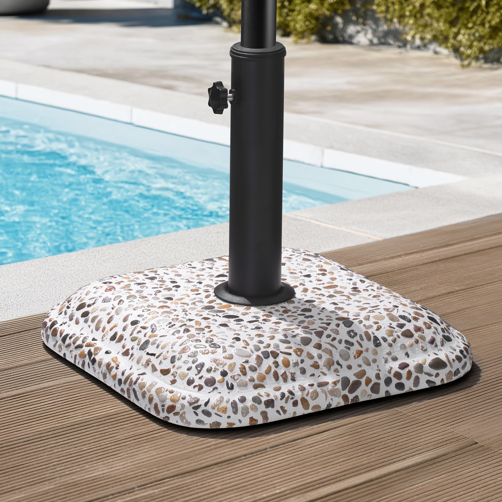 Sleek Modern Design: With its elegant black finish and unique cobblestone texture, this umbrella base brings a contemporary, stylish touch to any outdoor space—whether it's a patio, garden, poolside, or more.