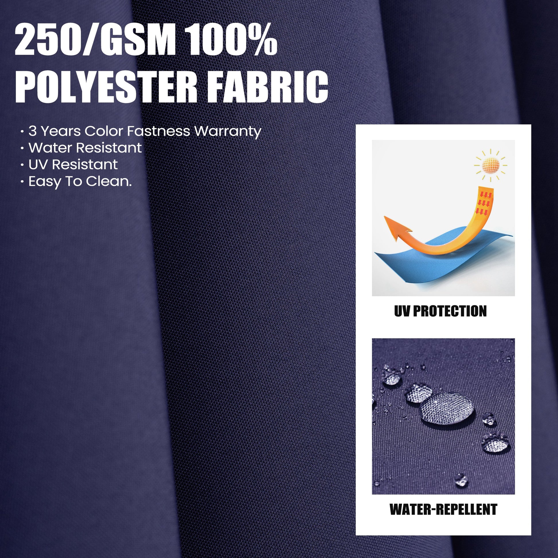UV-Resistant Premium Canopy: Made from 250g solution-dyed polyester that resists fading, water, and UV rays—maintaining vibrant color and reliable protection season after season.