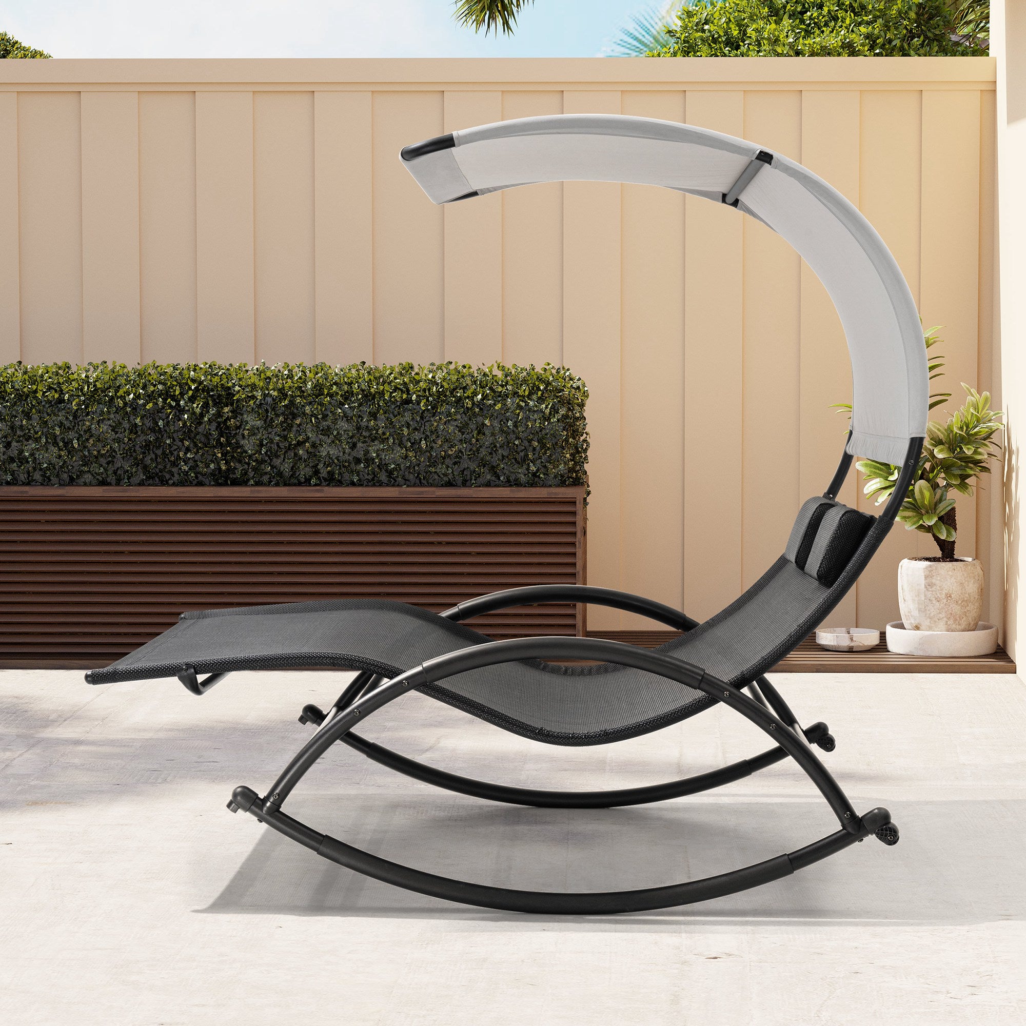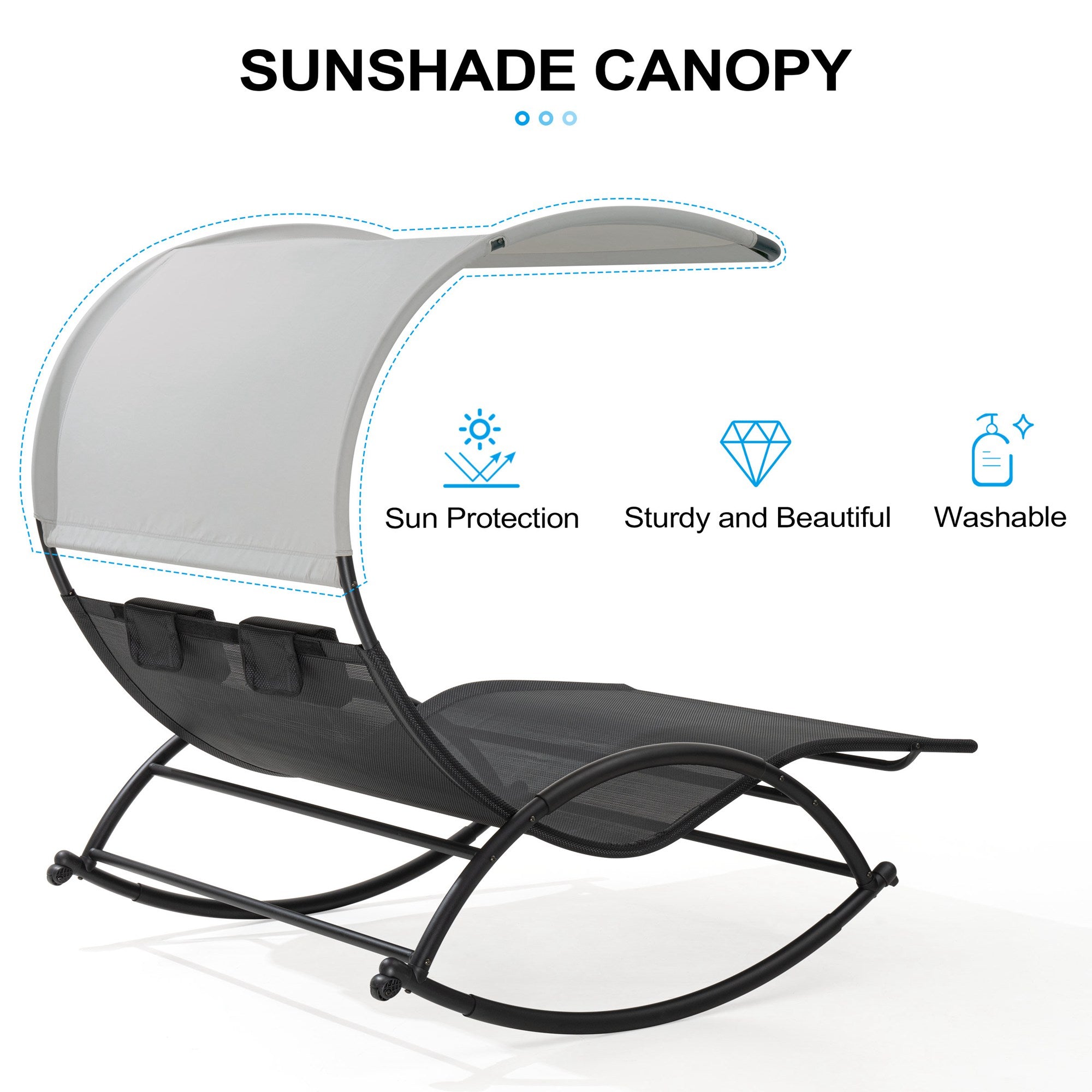 Shaded & Cozy Design: The polyester canopy blocks harsh sunlight, letting you relax outdoors in comfort. With removable pillows and wrapped armrests, it's ideal for lounging, reading, or napping.
