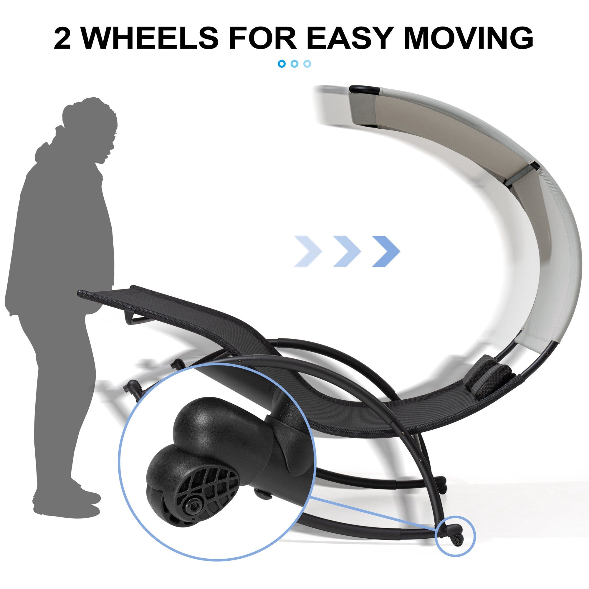 Easy Mobility: Equipped with two smooth wheels for effortless movement—simply roll your lounger to chase the sun or relax in the shade anytime.