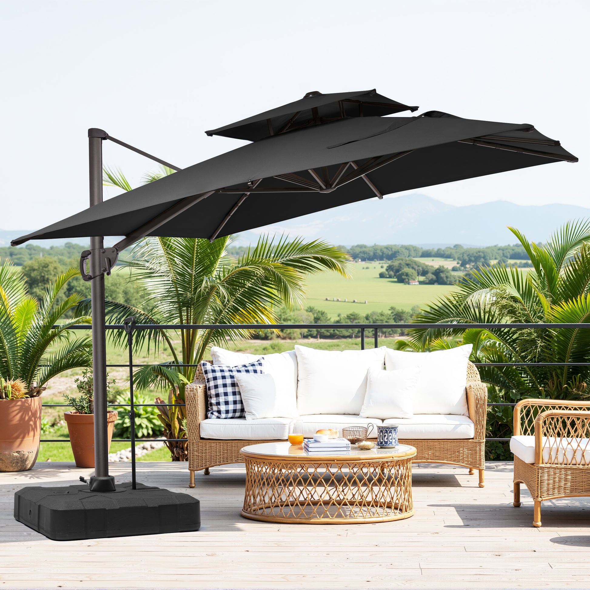 Crestlive Products 11x9ft Aluminum Double Top Crank Cantilever Patio Umbrella with Base