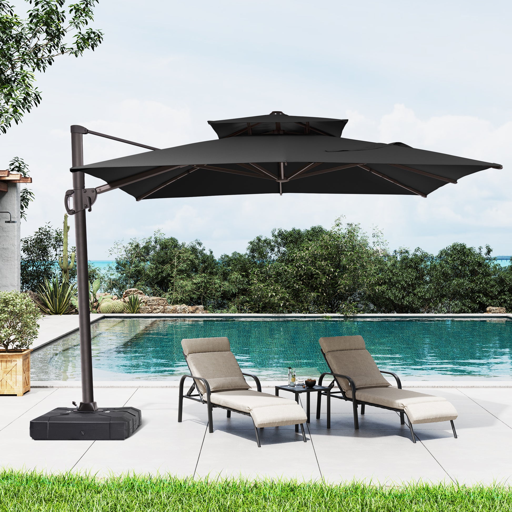 Crestlive Products 11x9ft Aluminum Double Top Crank Cantilever Patio Umbrella with Base