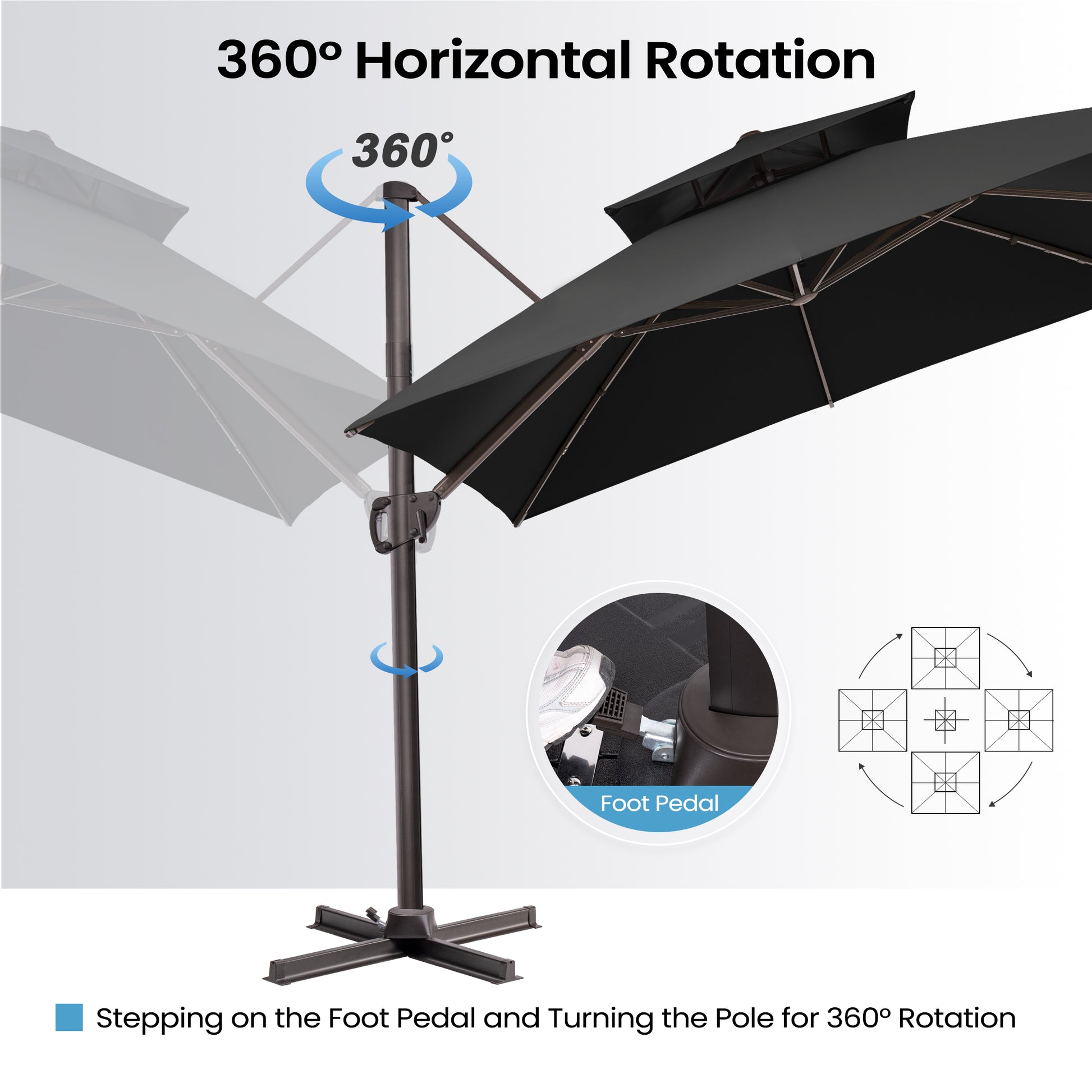 Flexible Tilt & Rotation Design: Customize your shade effortlessly with the 6-position tilt handle, or use the convenient foot pedal to rotate the umbrella a full 360°—providing complete coverage and comfort from morning to evening.