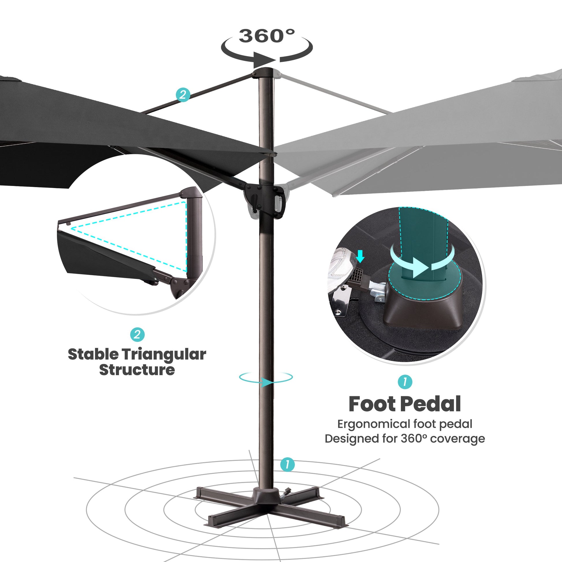 360° Rotation & Multi-Angle Tilt: Easily adjust shade throughout the day using the foot pedal for smooth 360° rotation and a six-level tilt system that blocks sunlight from every direction.