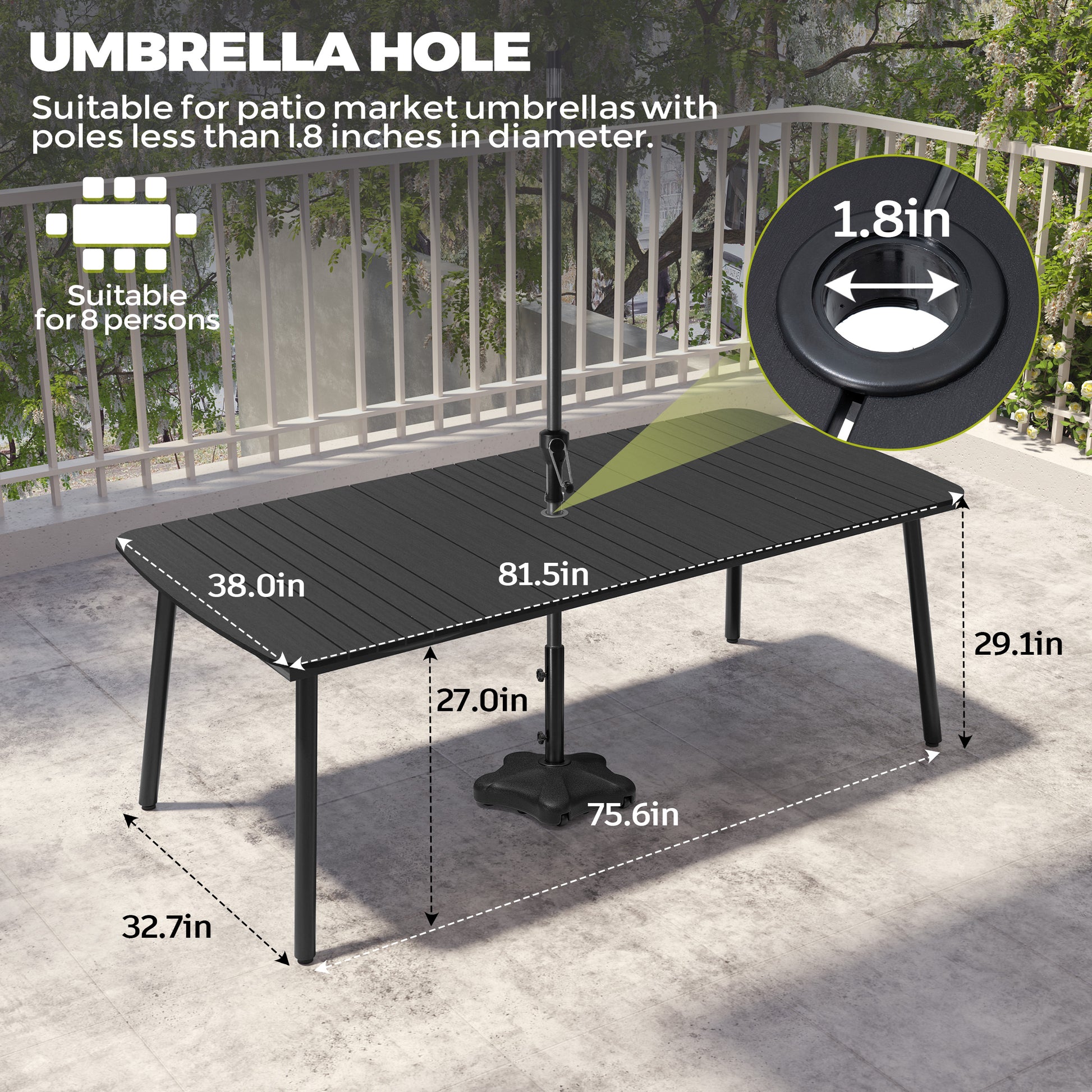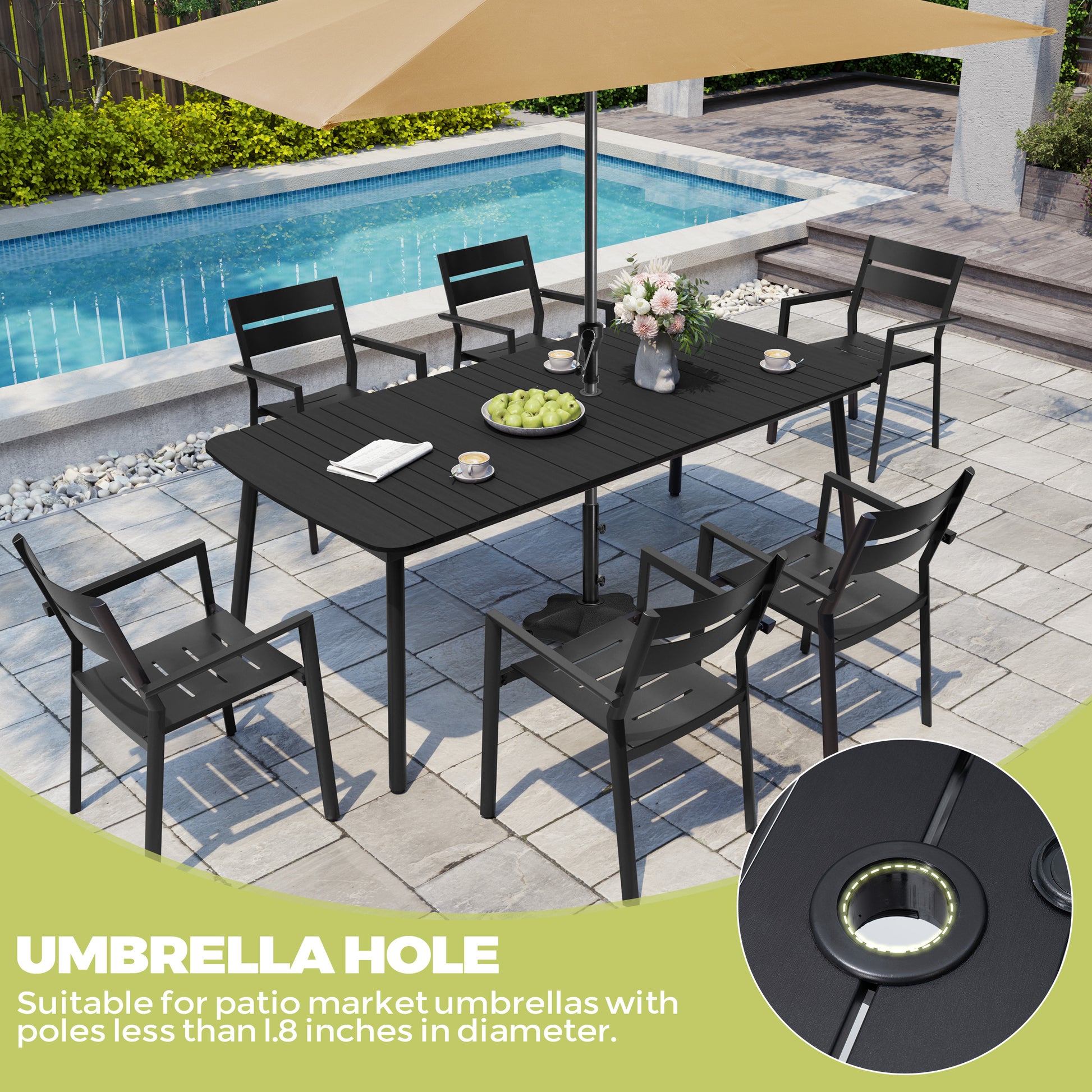 Umbrella Hole Design: Features a convenient umbrella hole so you can easily add shade on sunny days. Ideal for outdoor barbecues, family meals, or casual gatherings in your patio, garden, or pool area.