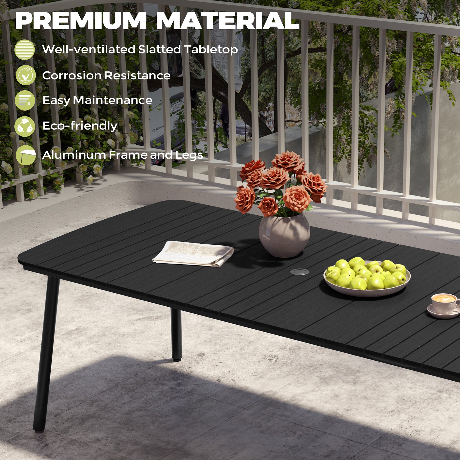 Lightweight and Versatile: With its lightweight design, this patio dining table can be easily moved anywhere. Whether used as your main dining table or as a serving table for larger events, it’s perfect for hosting in any outdoor space.