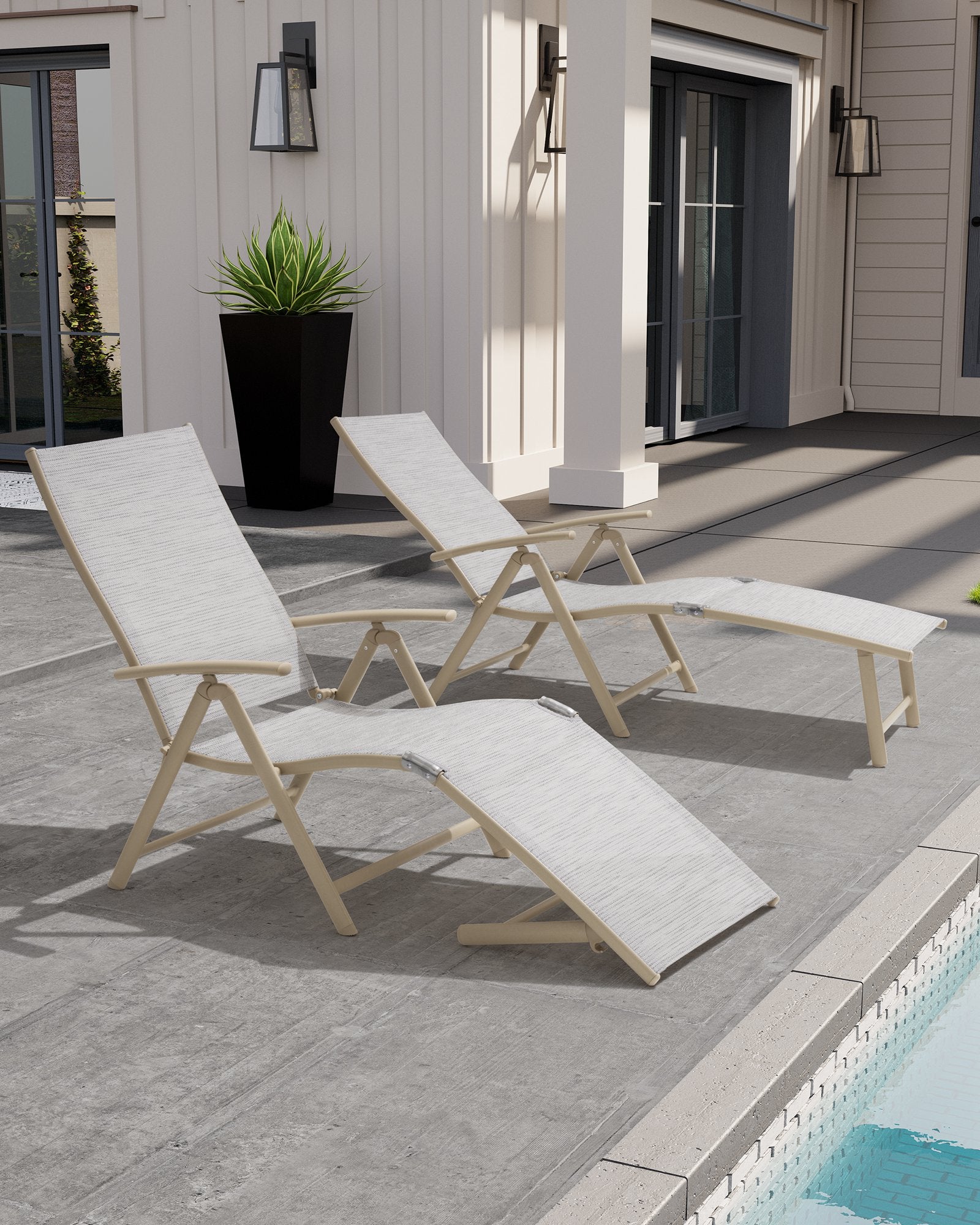 Multi-position Adjustment: Each pool lounger features 8 preset backrest angles and 2 footrest positions, allowing you to find the most comfortable posture whether you're reading, sunbathing, or taking a nap.