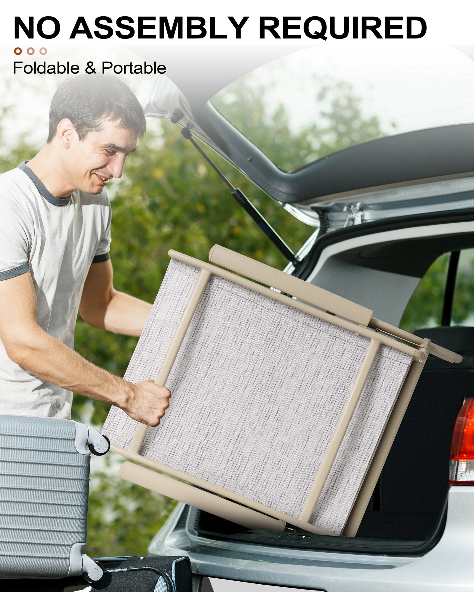 Durable & Easy to Maintain: Crafted with UV-resistant and breathable Textilene fabric, the seat, back, and tabletop are water-resistant, quick-drying, and easy to clean—keeping your furniture looking fresh season after season. Note: Wipe the seat with a damp cloth after use to prevent sweat stains.