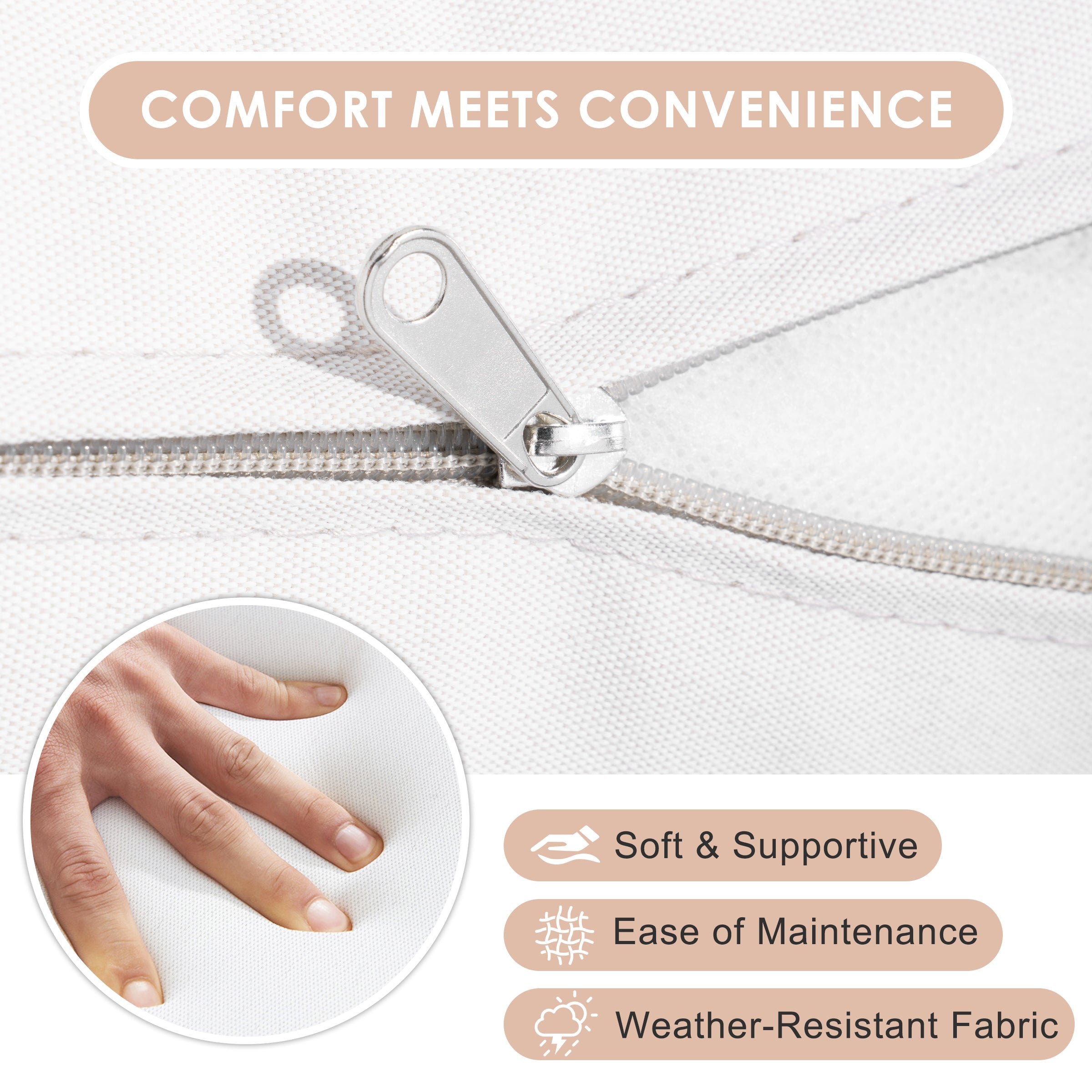 Comfortable & Easy-Care Cushions: Sink into 4.5-inch thick, high-density foam cushions that provide deep comfort and lasting support. The hidden-zipper cushion covers are water- and fade-resistant, making them easy to remove and clean for year-round freshness.