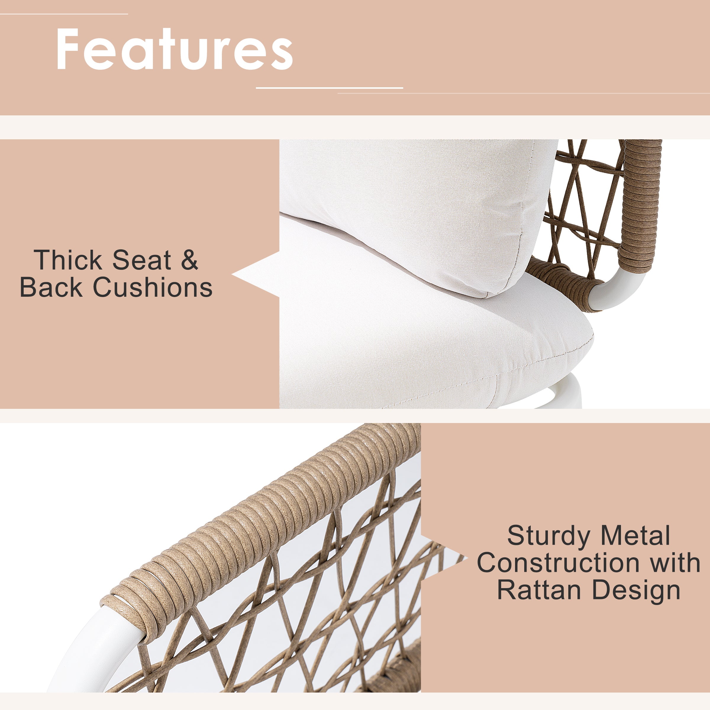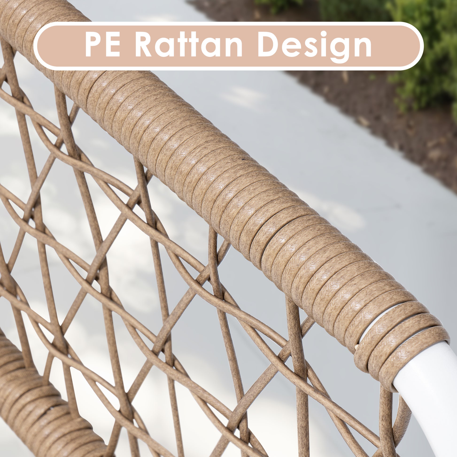 Eco-Friendly PE Rattan: Handwoven from premium PE rattan, this set brings a natural, elegant touch to your outdoor space. The eco-friendly material is resistant to fading, moisture, and dust, keeping it beautiful and low-maintenance season after season.