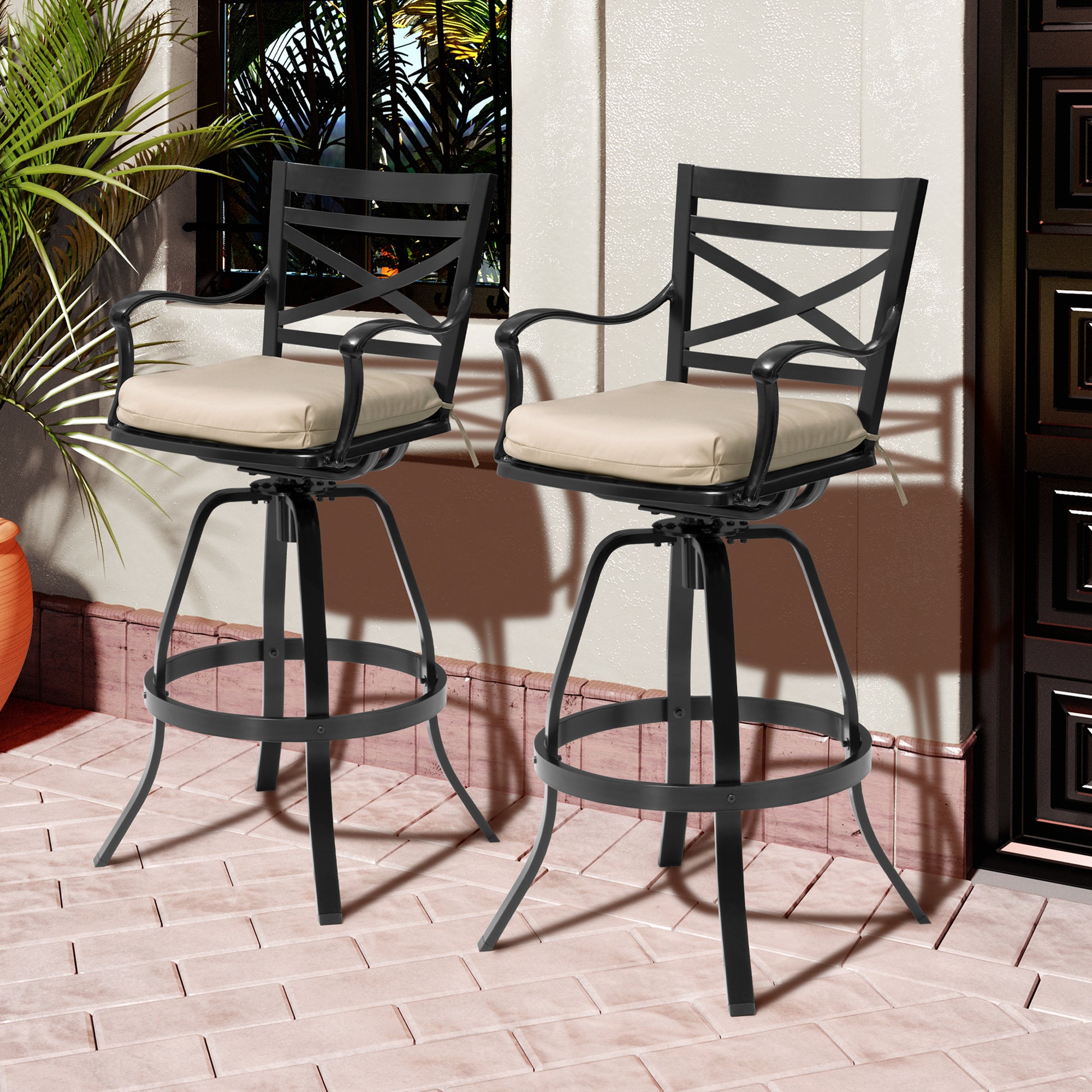 Crestlive Products Aluminum Outdoor Swivel Bar Stool Set of 2 with Sunbrella Cushion
