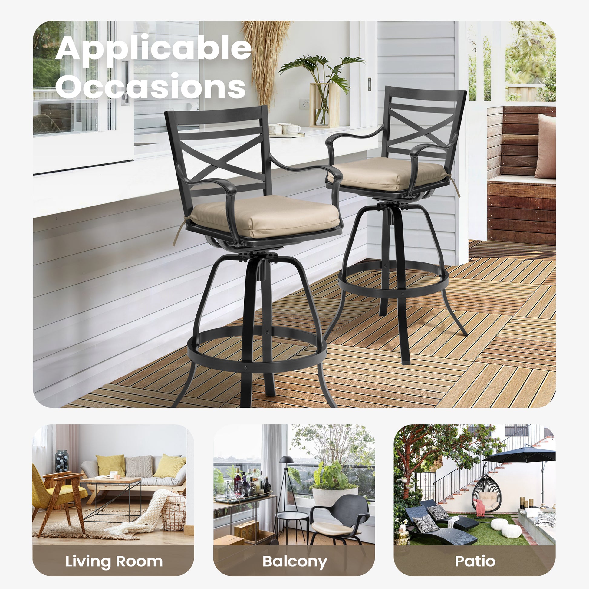 Excellent Design: 360° swivel patio bar chairs with a smooth rotation and gentle rocking motion for extra relaxation — perfect for chatting, sipping, or unwinding outdoors.