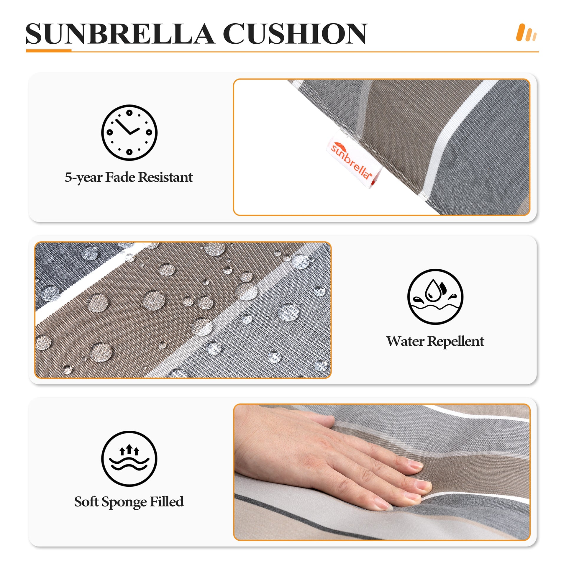Premium Sunbrella Cushions: Made with fade-proof, weather-resistant Sunbrella fabric that's soft, breathable, and gentle on the skin. The high-density sponge filling provides a plush yet supportive seat for hours of comfort. Note: Store indoors during heavy rain for added longevity.