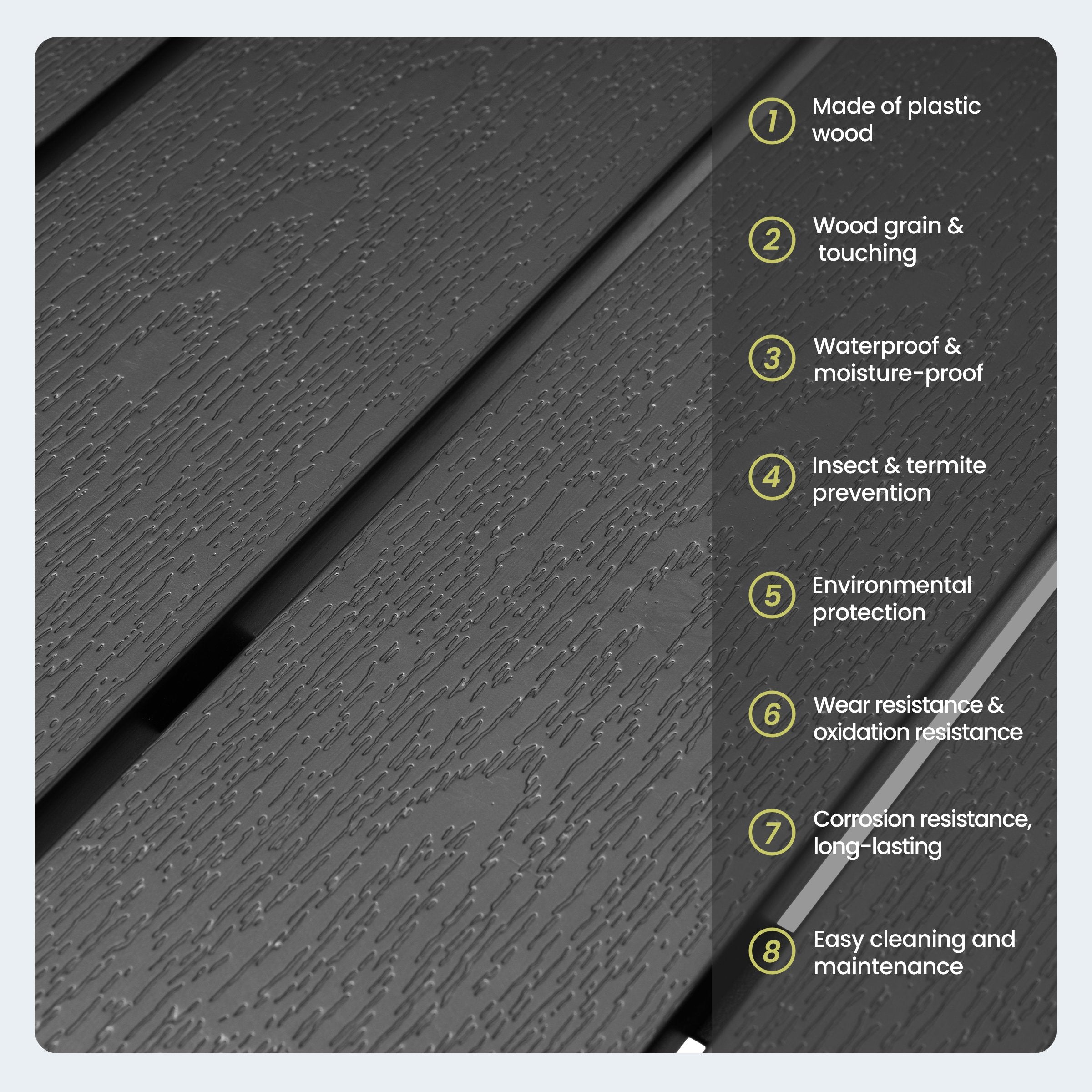 Eco-Friendly Plastic Wood Top: Combines the natural texture of wood with the durability of plastic. Waterproof, moisture-proof, insect-resistant, and won't crack or warp—ideal for all weather conditions.