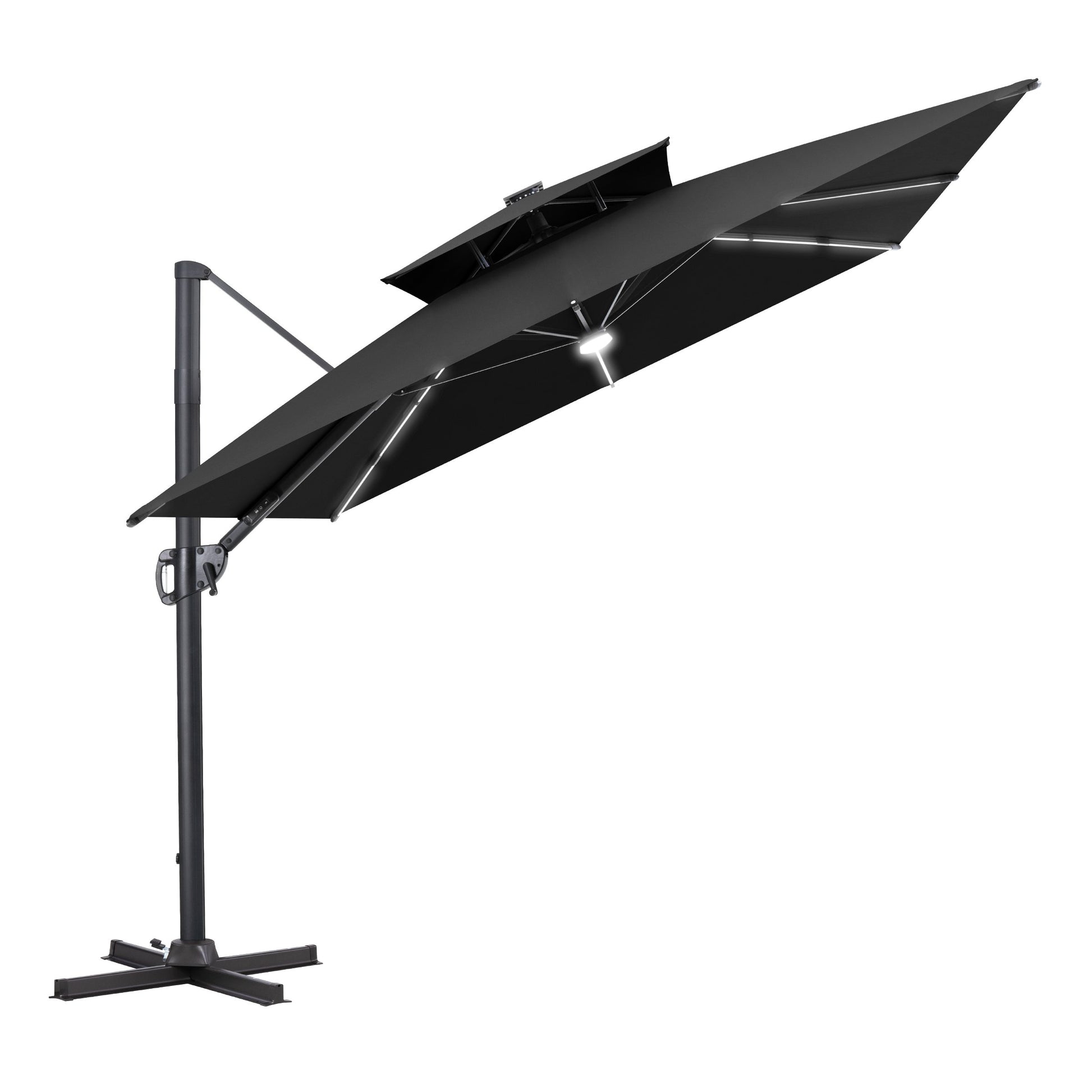 Crestlive Products 11 x 9 ft Aluminum Double Top Cantilever Patio Umbrella with LED Lights