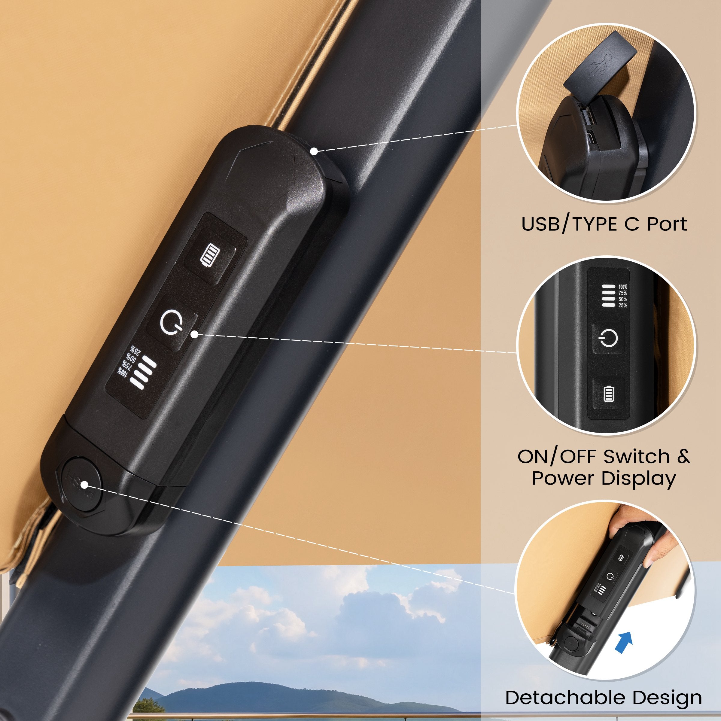 Built-in LED Light Strips: Enjoy soft, warm illumination from the integrated LED light strips, creating a cozy ambiance for evening relaxation or entertaining friends outdoors.