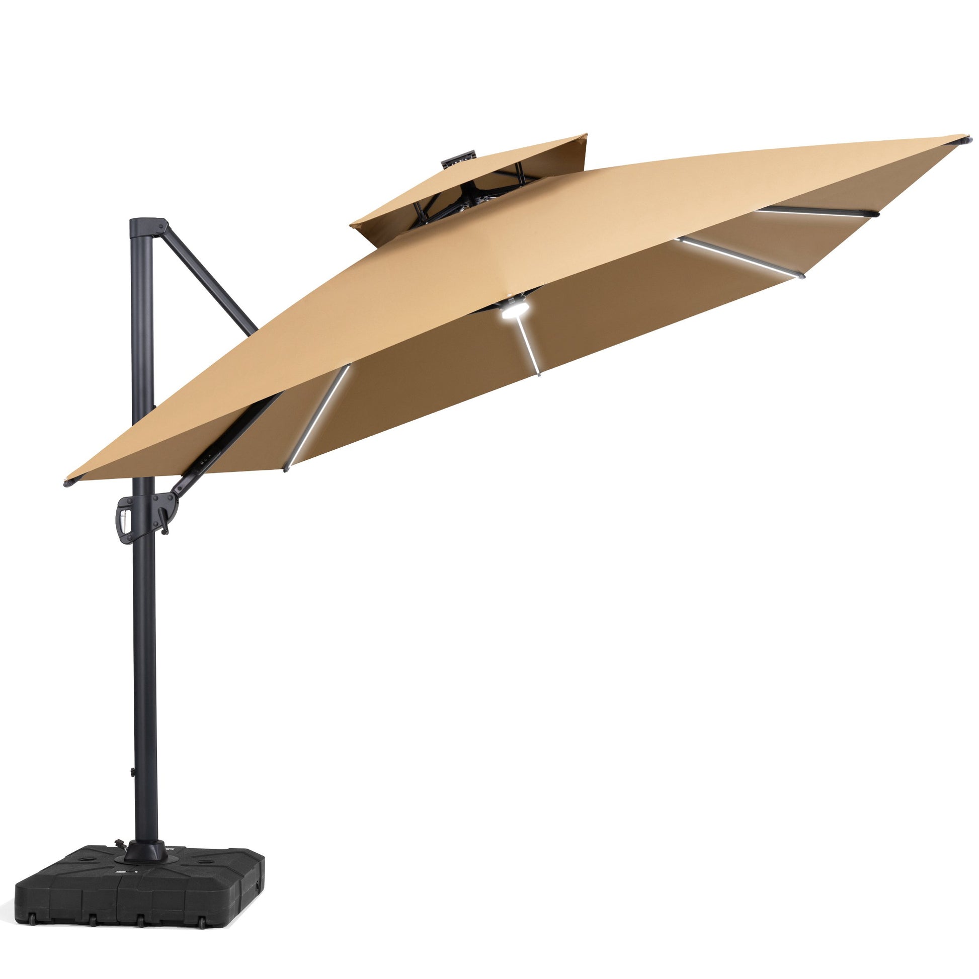 Crestlive Products 13 x 10 ft Aluminum Double Top Cantilever Patio Umbrella with LED Strip Lights and Base Options