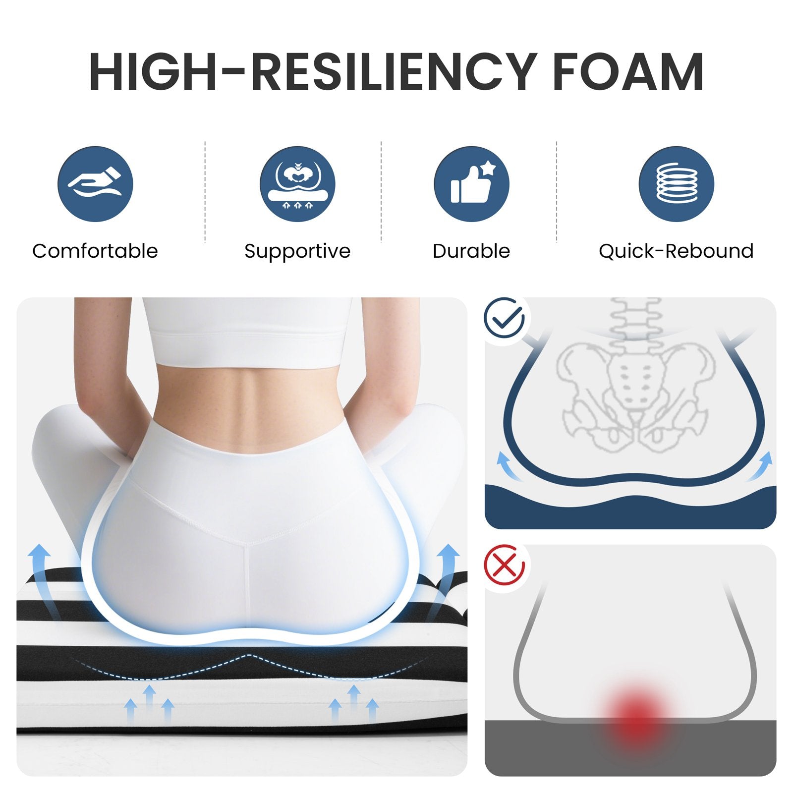 High-Resiliency Foam Filling: Filled with premium high-resilience foam, it delivers lasting durability, quick rebound, and all-day comfort while maintaining its shape and support over time.