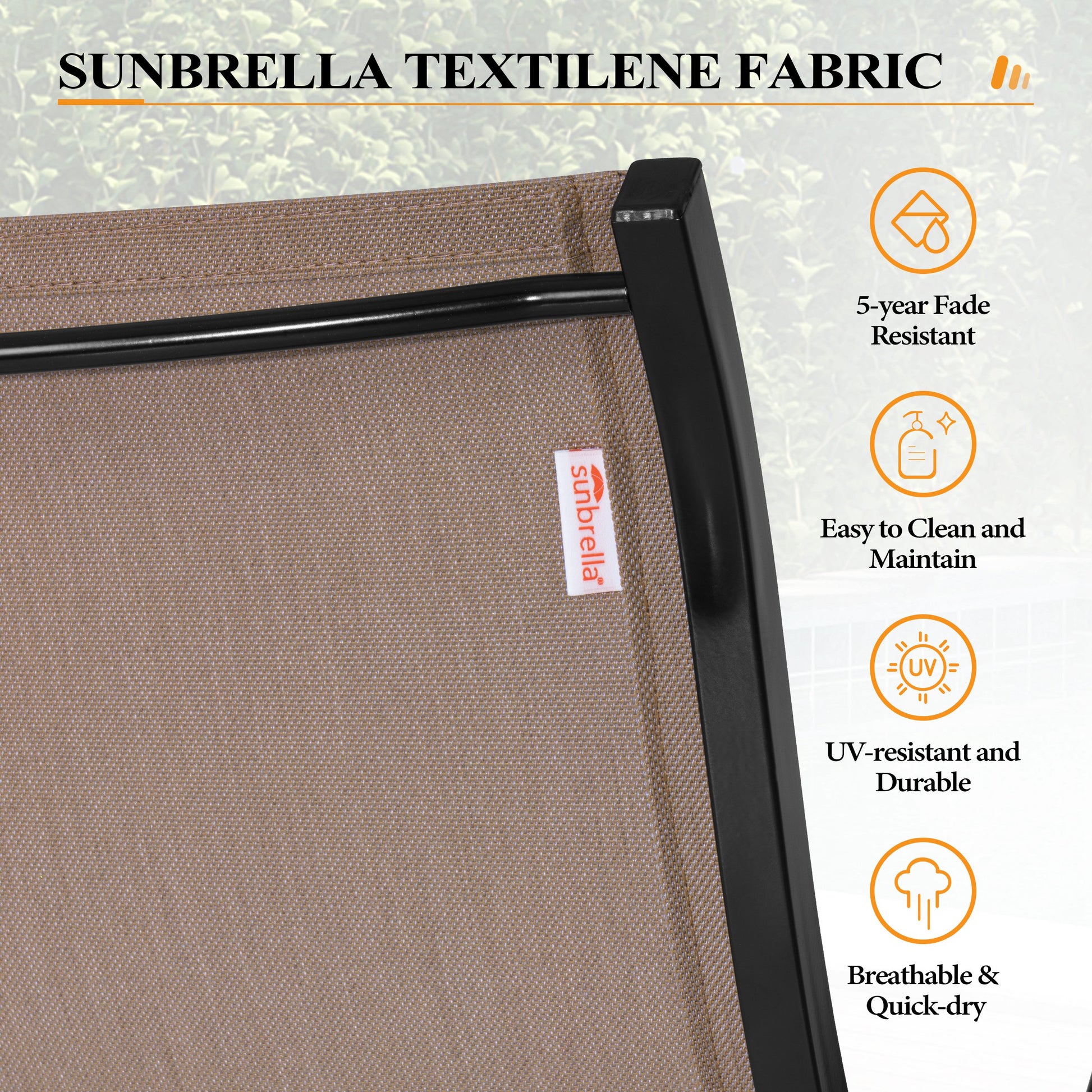 Aluminum Frame & Sunbrella Fabric: Made with a rust-resistant aluminum frame and durable, breathable Sunbrella fabric that’s quick-drying and fade-resistant — built to stay cool, comfortable, and long-lasting in any outdoor space.