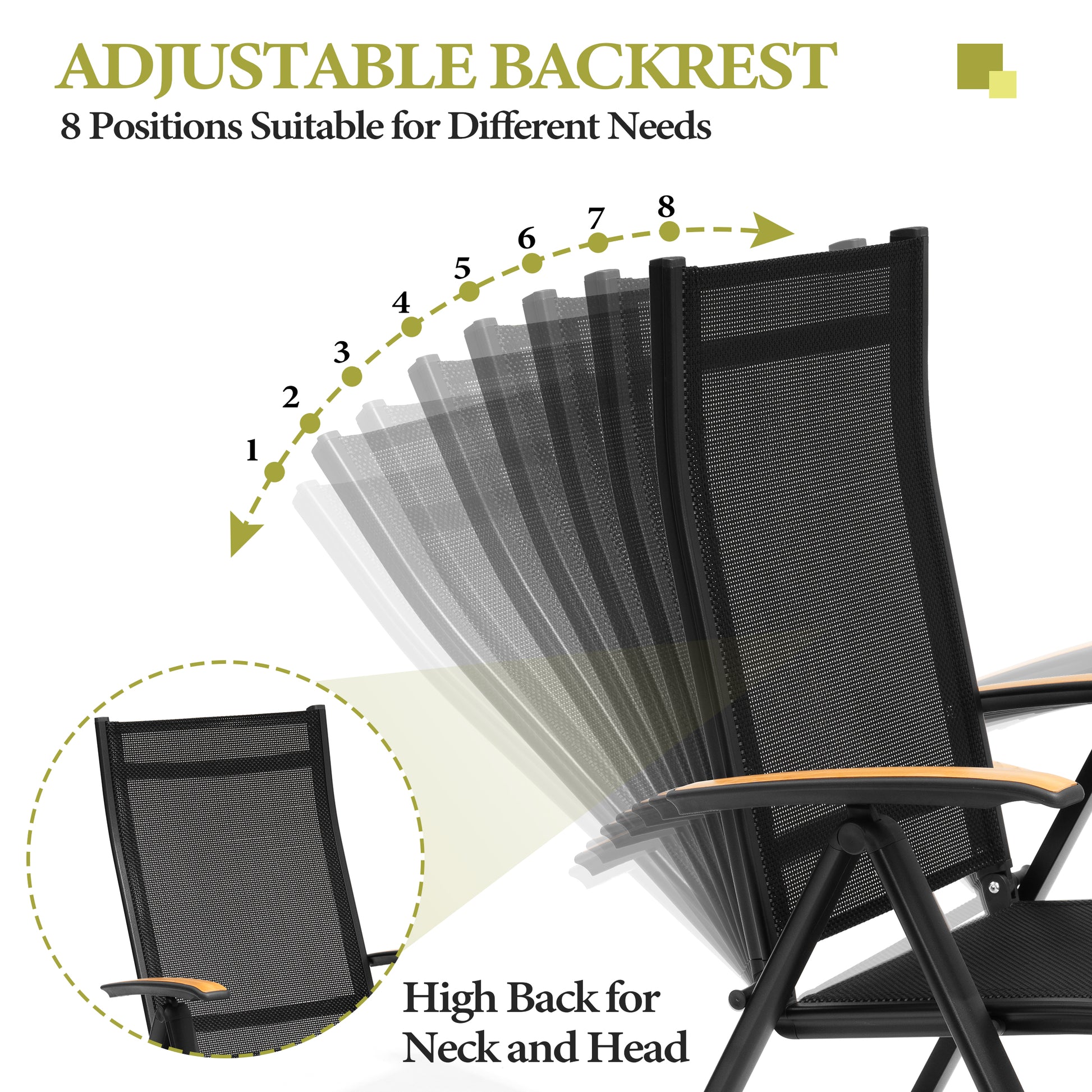 Crestlive Products Outdoor Adjustable Aluminum Folding Chairs Set of 2 Black Metal Frame Stationary Dining Chair with Black Mesh Seat