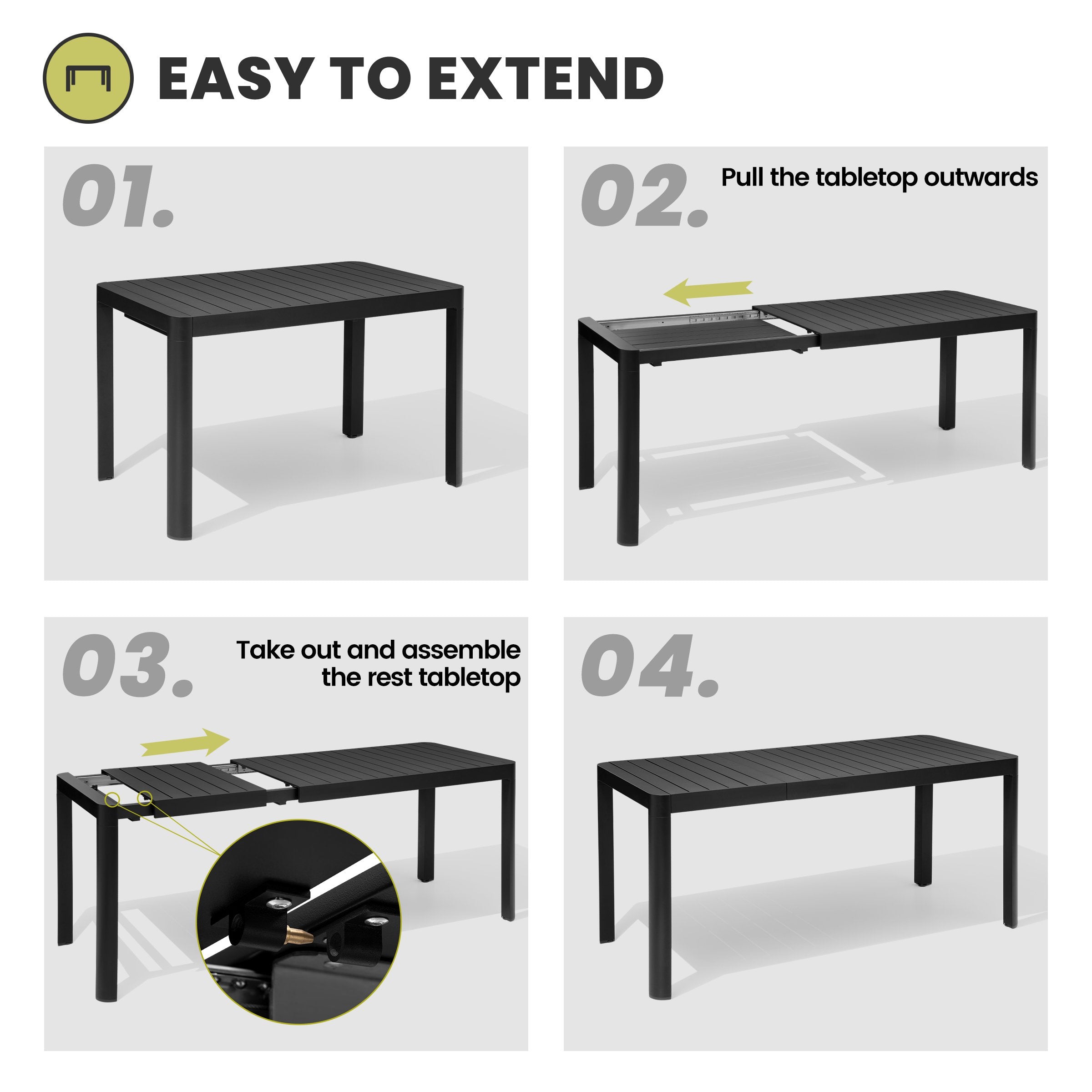 Space-Saving Extendable Tabletop: The extendable tabletop easily expands from 46 inches to 64 inches, comfortably seating 4 to 6 people. Perfect for family dinners or outdoor gatherings while saving space when not extended.