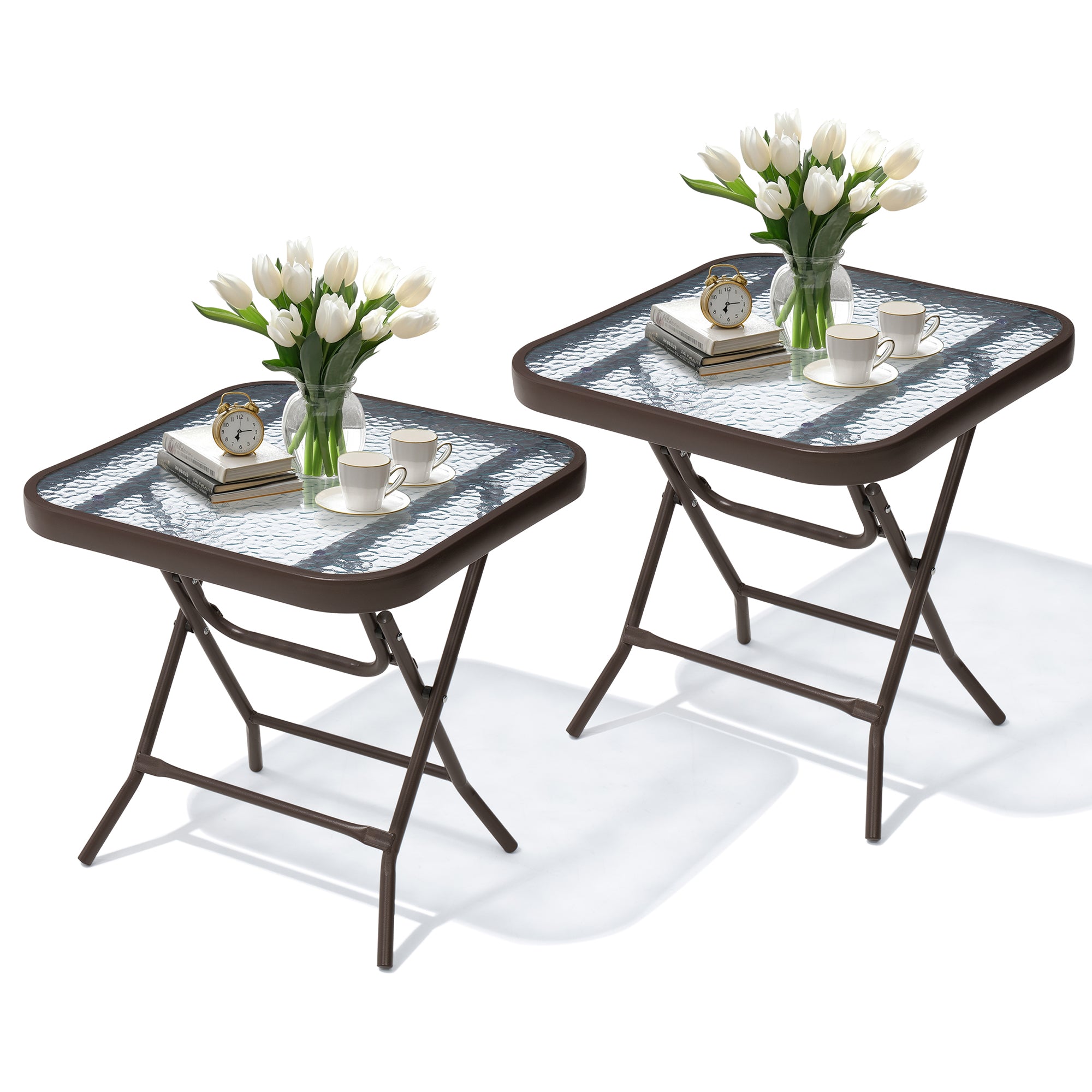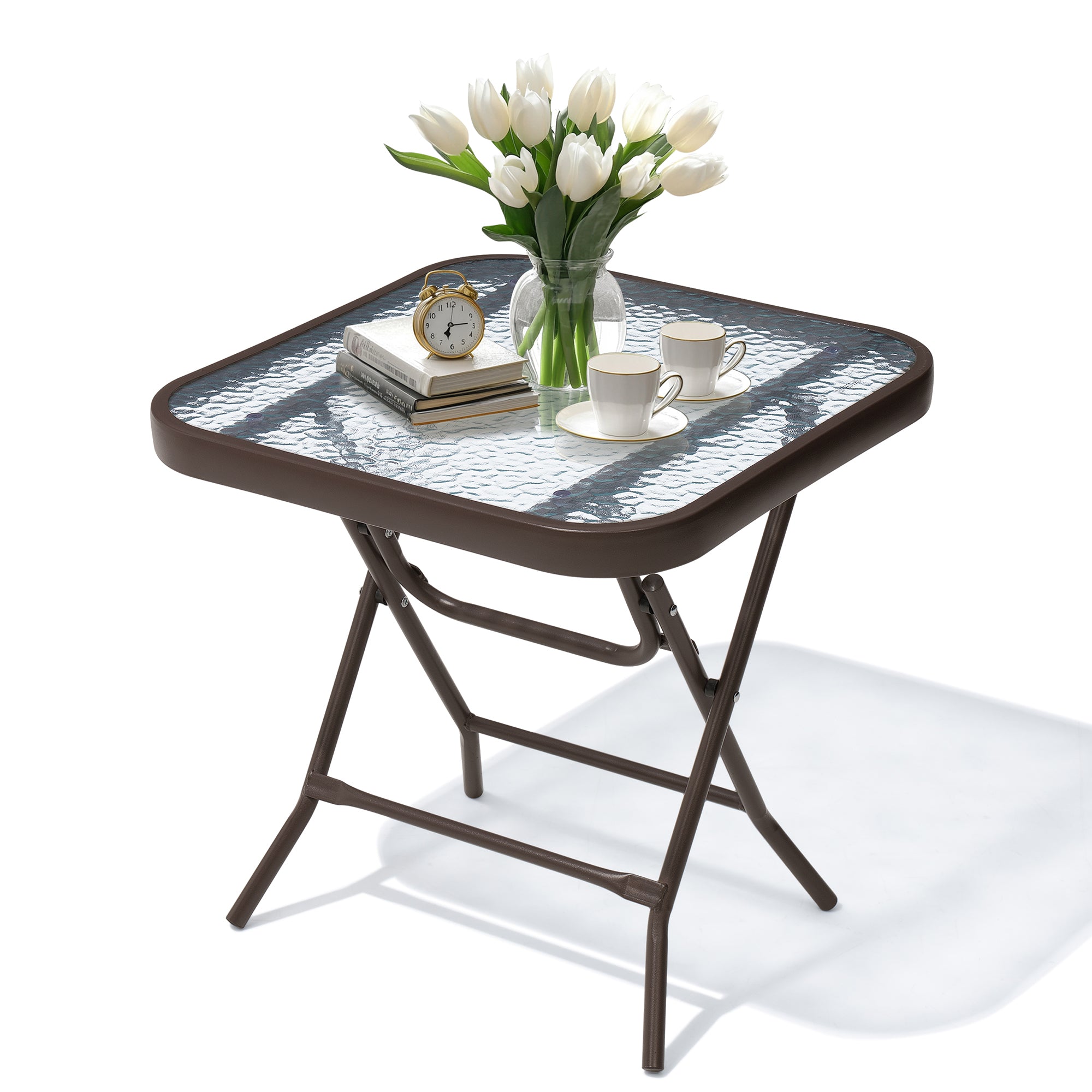 Stylish & Versatile Design: The square glass top and sleek metal frame of our patio side table effortlessly blend into any home decor. Its perfect size makes it an ideal side table for your lawn, garden, balcony, porch, deck, or pool area.