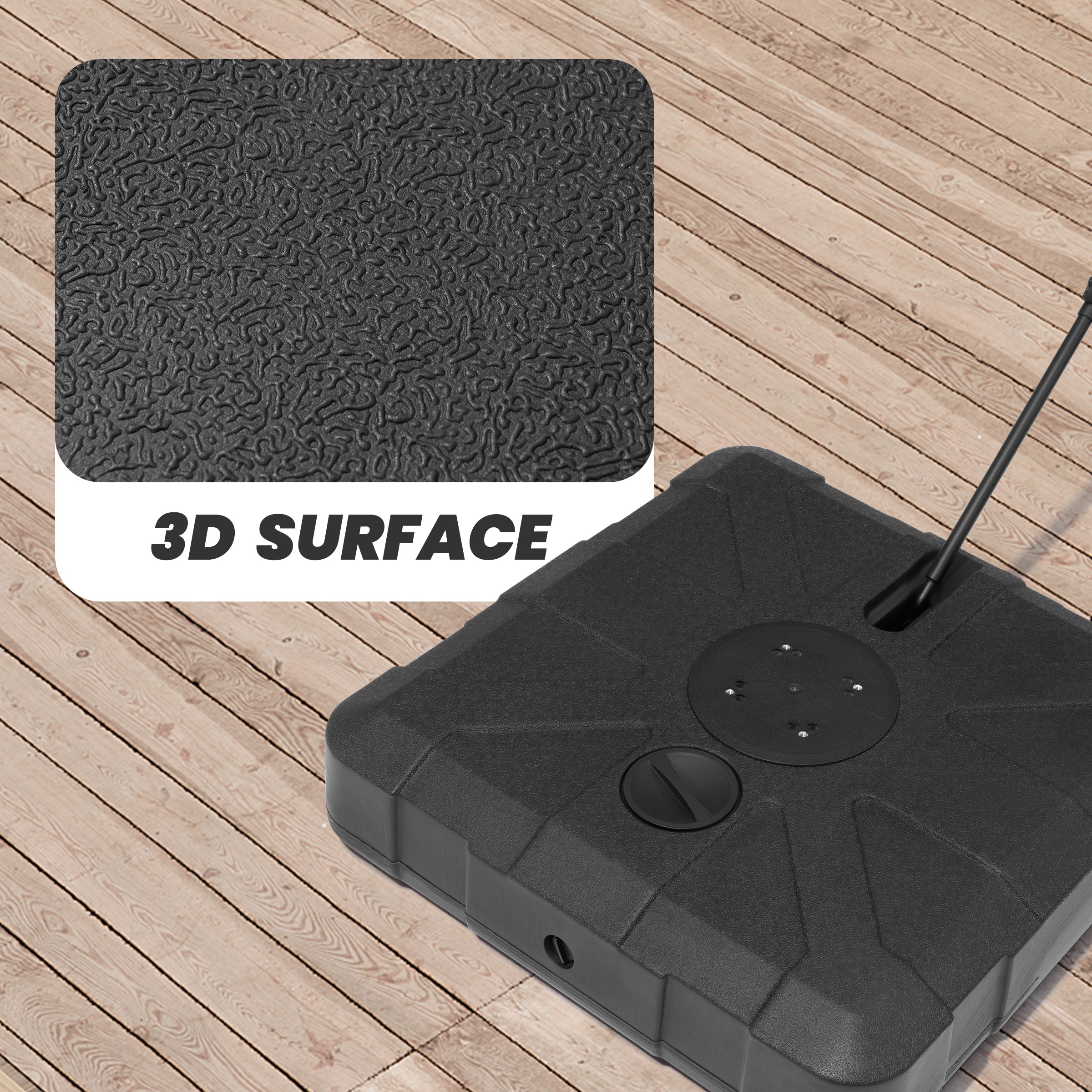 Easy to Fill: Designed with a large water filling port for quick setup, this base can be filled with water or sand to reach about 300 lbs for strong stability. The side drainage outlet makes emptying clean and effortless.