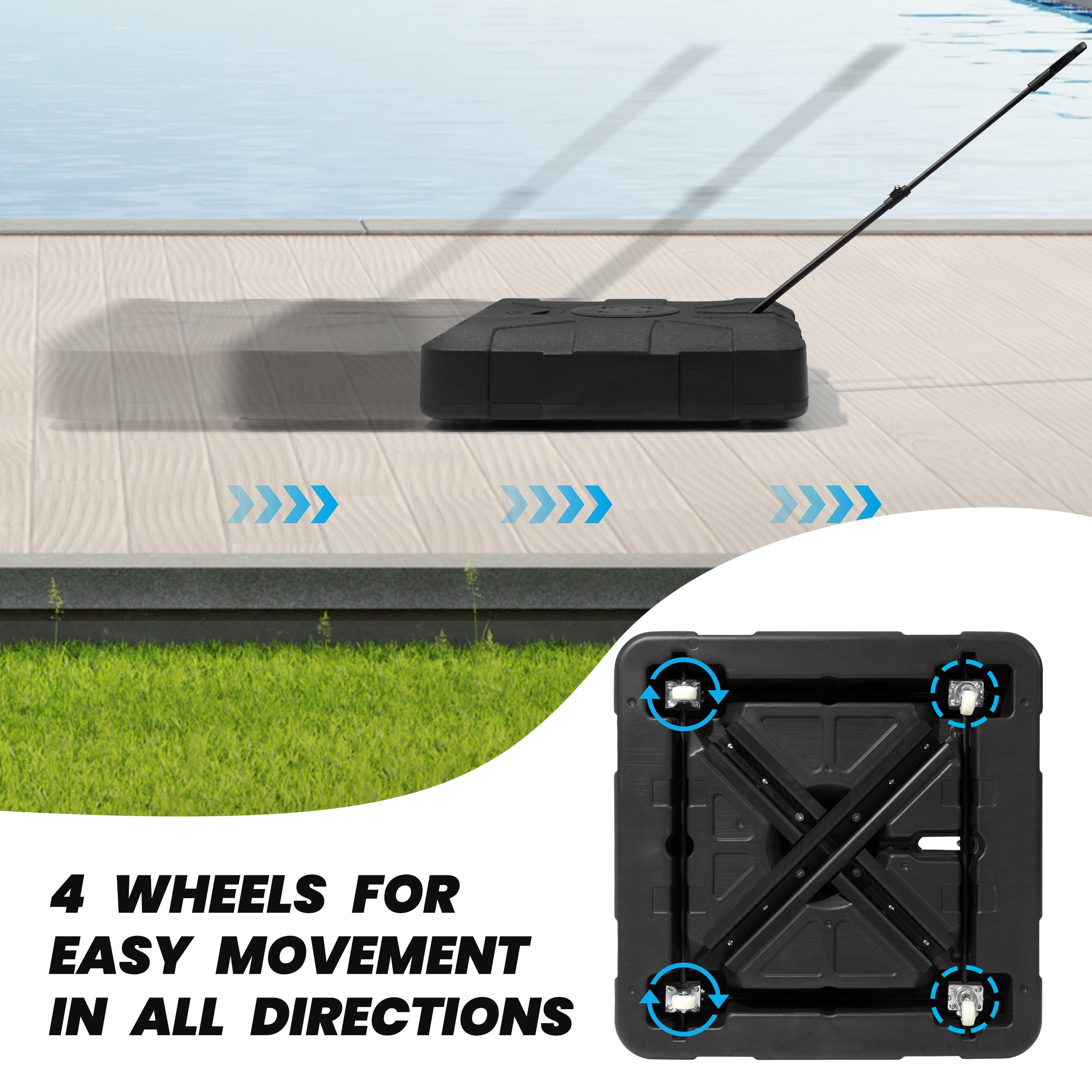 Mobile Upgrade: The base features four wheels for smooth and flexible movement. With the metal handle bar, you can easily move your umbrella base anywhere—stable, effortless, and convenient.