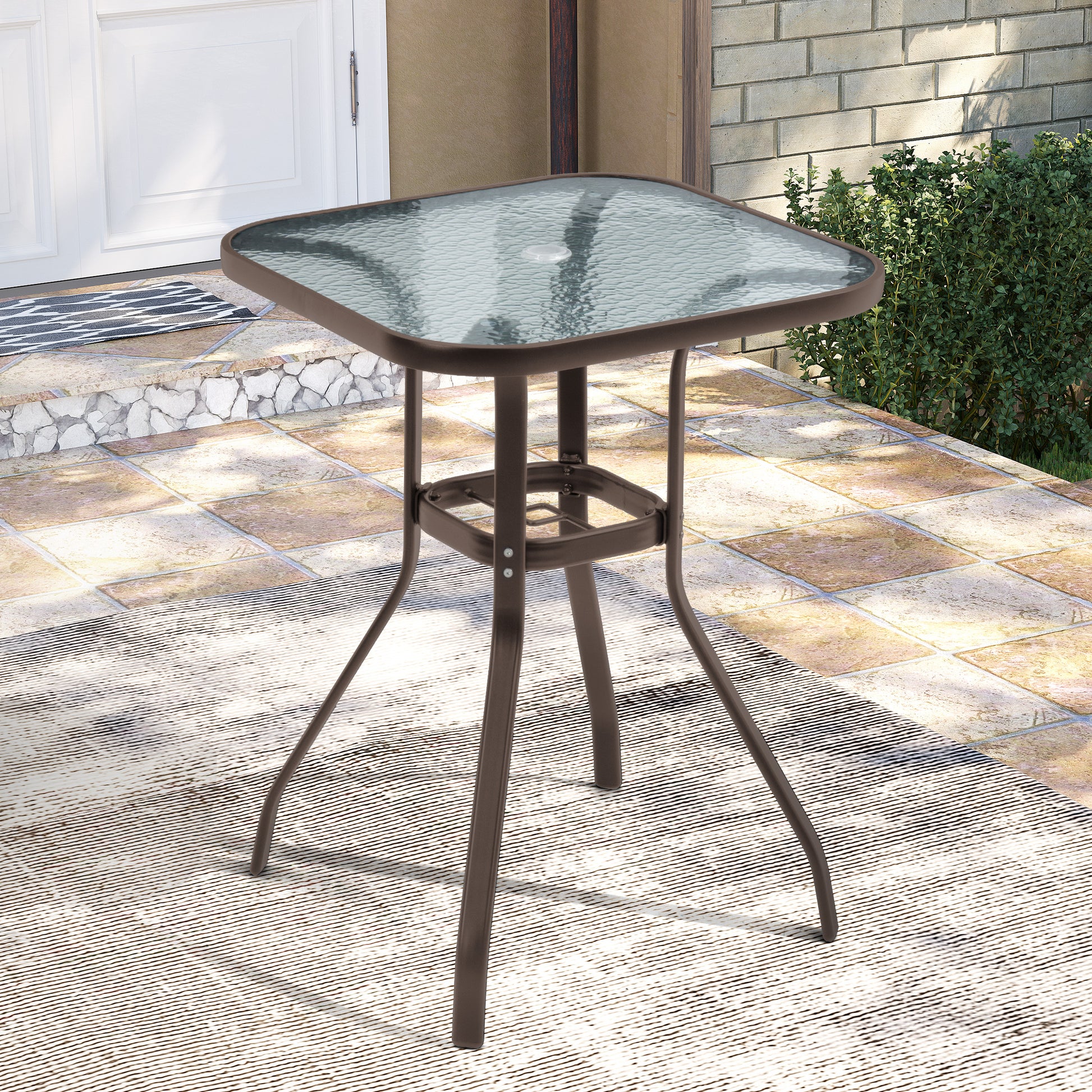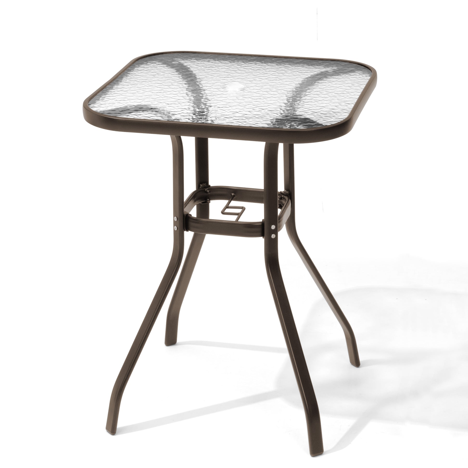 Crestlive Products 27 x 27 in. Metal Frame Square Glass Top Outdoor Side Table with Umbrella Hole