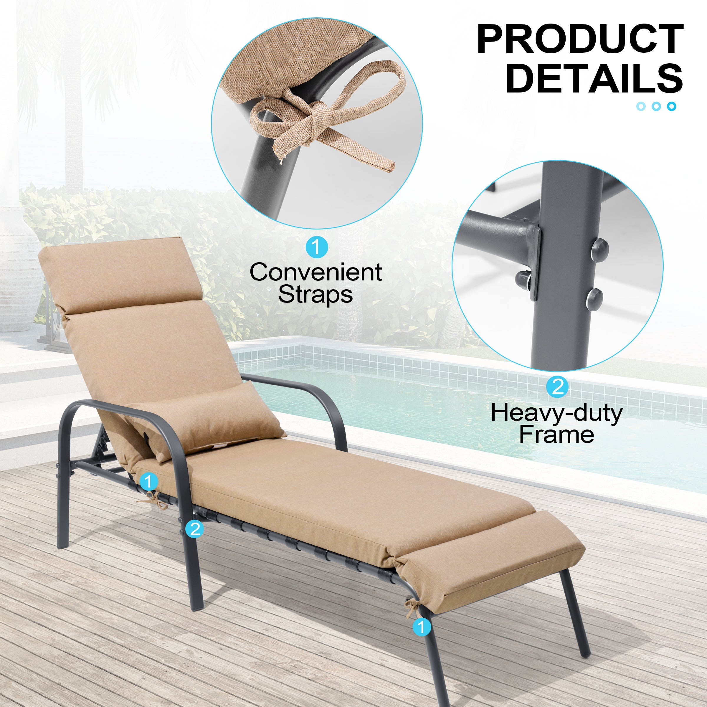 Adjustable Backrest: The multi-level adjustable backrest offers 4 positions and lays flat, allowing you to find the perfect angle for reading, lounging, or sunbathing. Recline it flat for a cozy nap, or keep it upright to enjoy a relaxing time outdoors.
