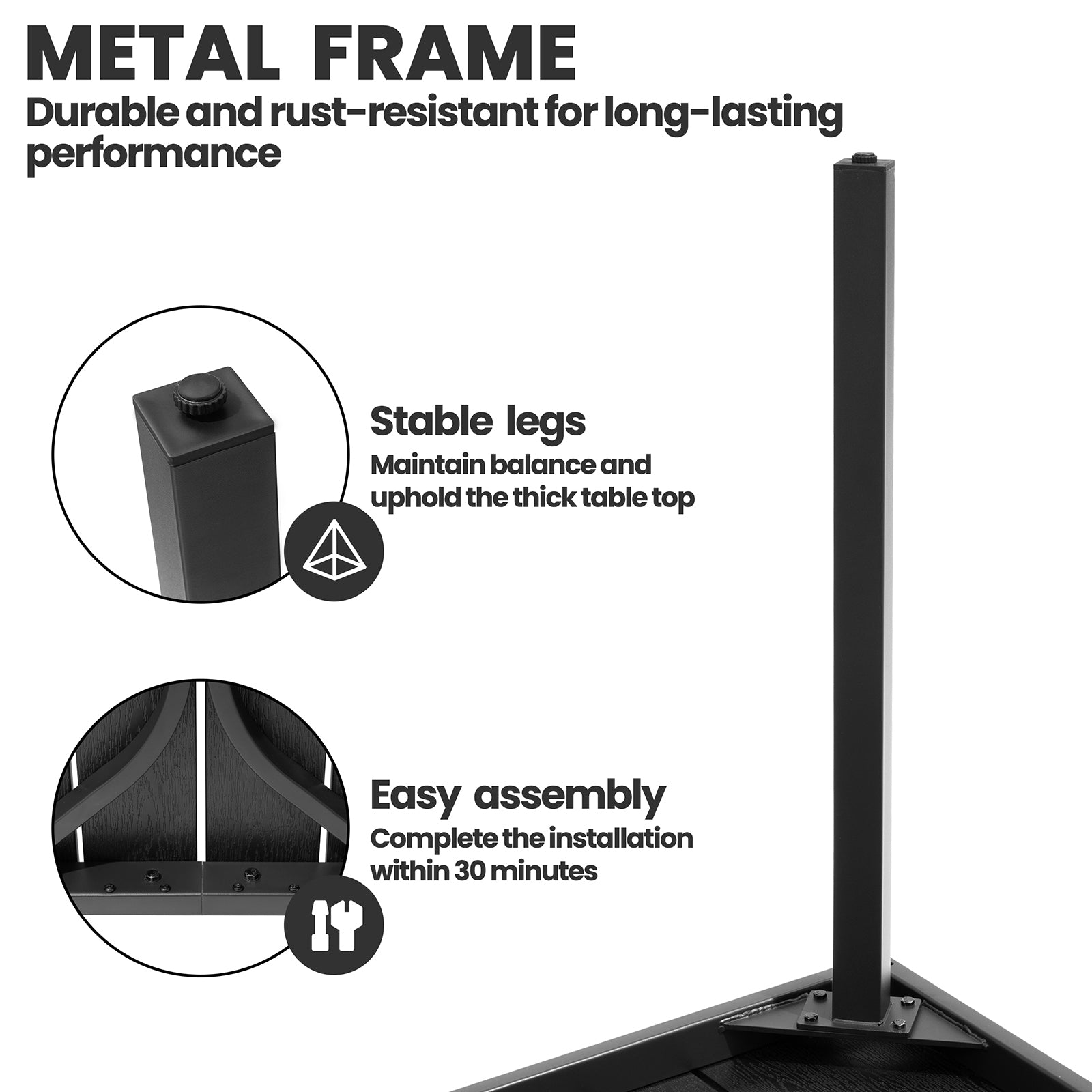 Durable & Weather-Resistant: Crafted from high-quality WPC (wood-plastic composite), this outdoor dining table is waterproof, scratch-resistant, and easy to maintain. The powder-coated metal legs ensure strength and durability for years of outdoor enjoyment.