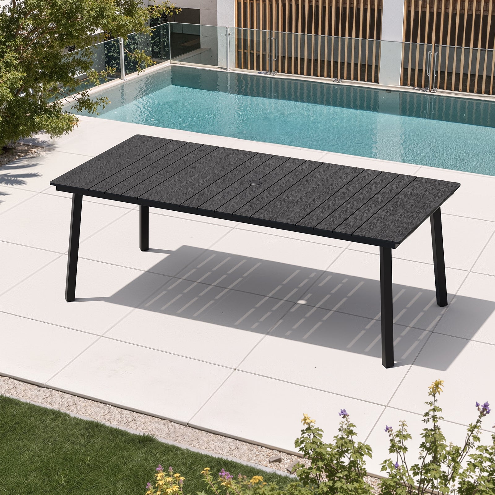 Umbrella Hole for Comfort: The tabletop features a standard 1.61-inch umbrella hole in the center, making it easy to add shade and stay cool during sunny days.