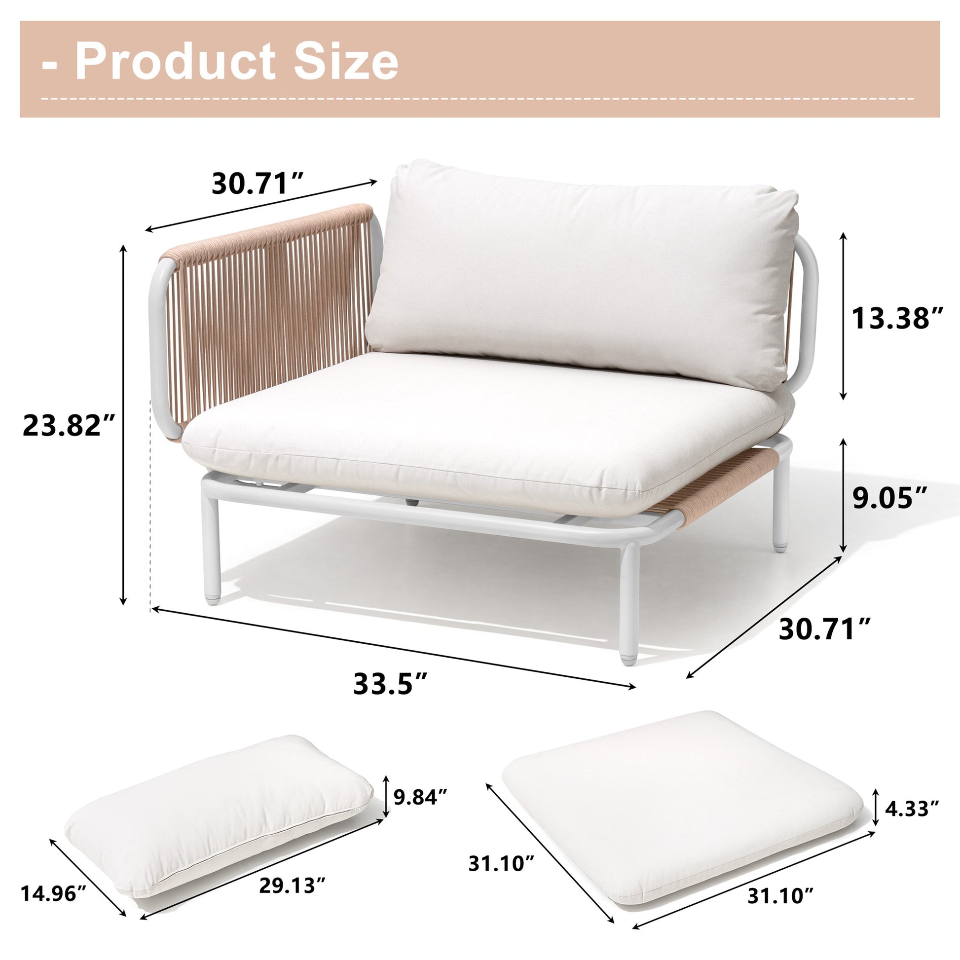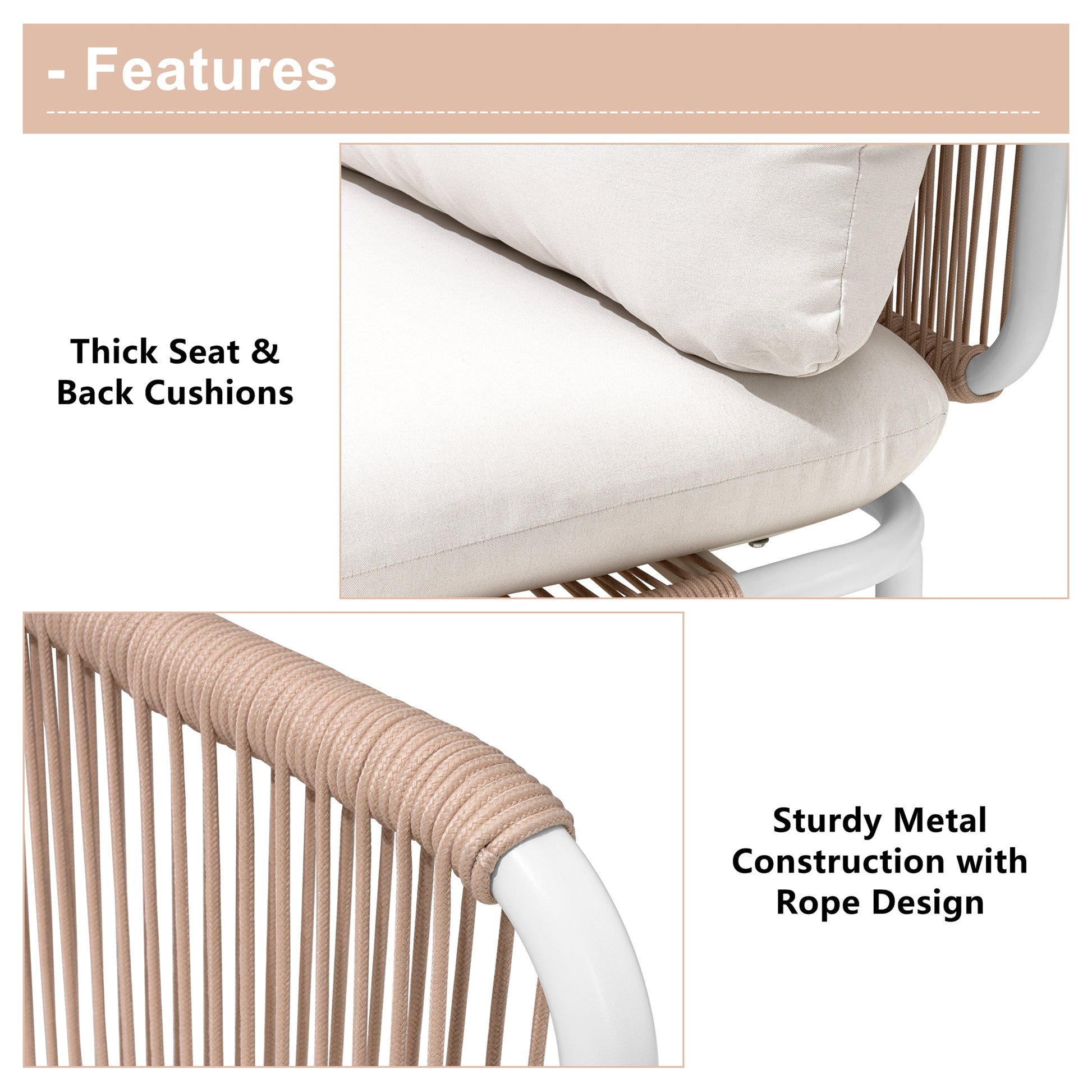 Durable Metal Frame with Rope Detail: Crafted with a powder-coated steel frame and elegant rope weave, this sofa is sturdy, rust-resistant, and built to withstand outdoor conditions all year round.