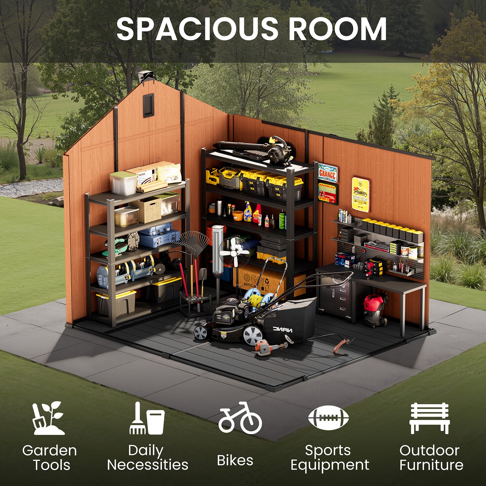 Easy Assembly & Versatile Use: Designed for two or more people to assemble using basic tools (a power drill is recommended). Perfect for patios, gardens, lawns, or poolside areas — it can be used as a storage room, tool shed, or small DIY workspace. The wood-grain texture adds a natural, refined look to any outdoor setting.