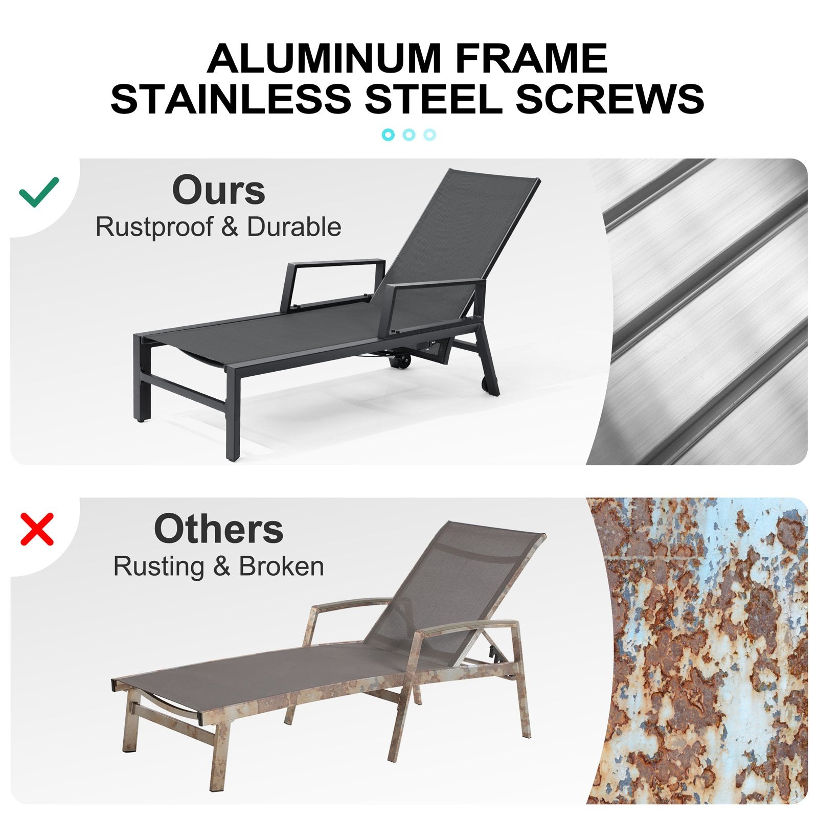 【Durable Aluminum Frame and High-Quality Fabric】Crestlive Products lounge chairs are made of rust-resistant powder-coated aluminum that resists deformation. The Textilene fabric used for the pool lounge chair is breathable, waterproof, UV-resistant, and fade-resistant.